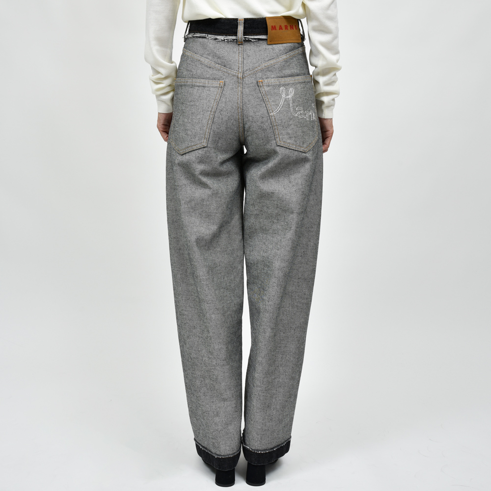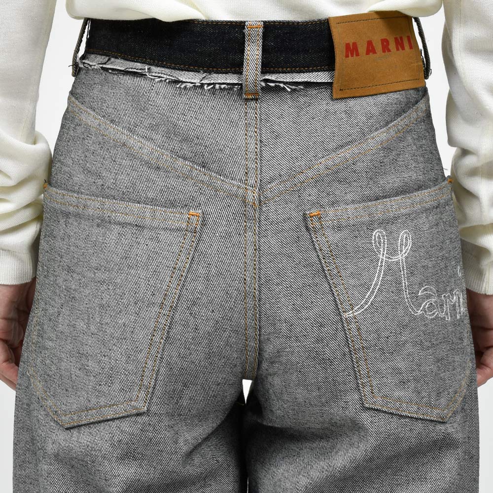 大胆な発想で仕立てられたMARNIのインサイドアウトデニムパンツ。