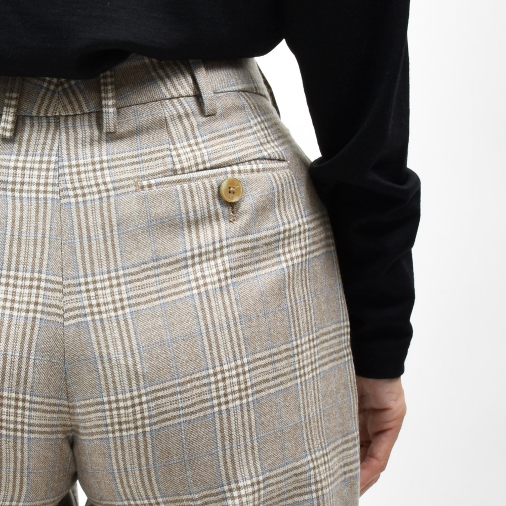 クラシックなグレンチェック柄に、現代的なシルエットを融合した一本。