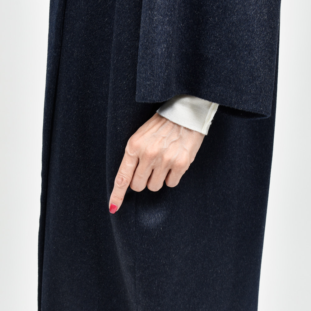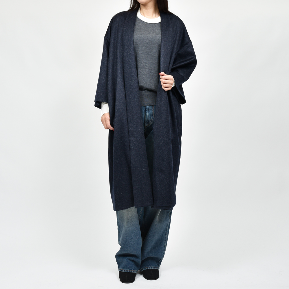 上質なカシミヤを贅沢に使用した、AMBRLLのボタンレスコート。