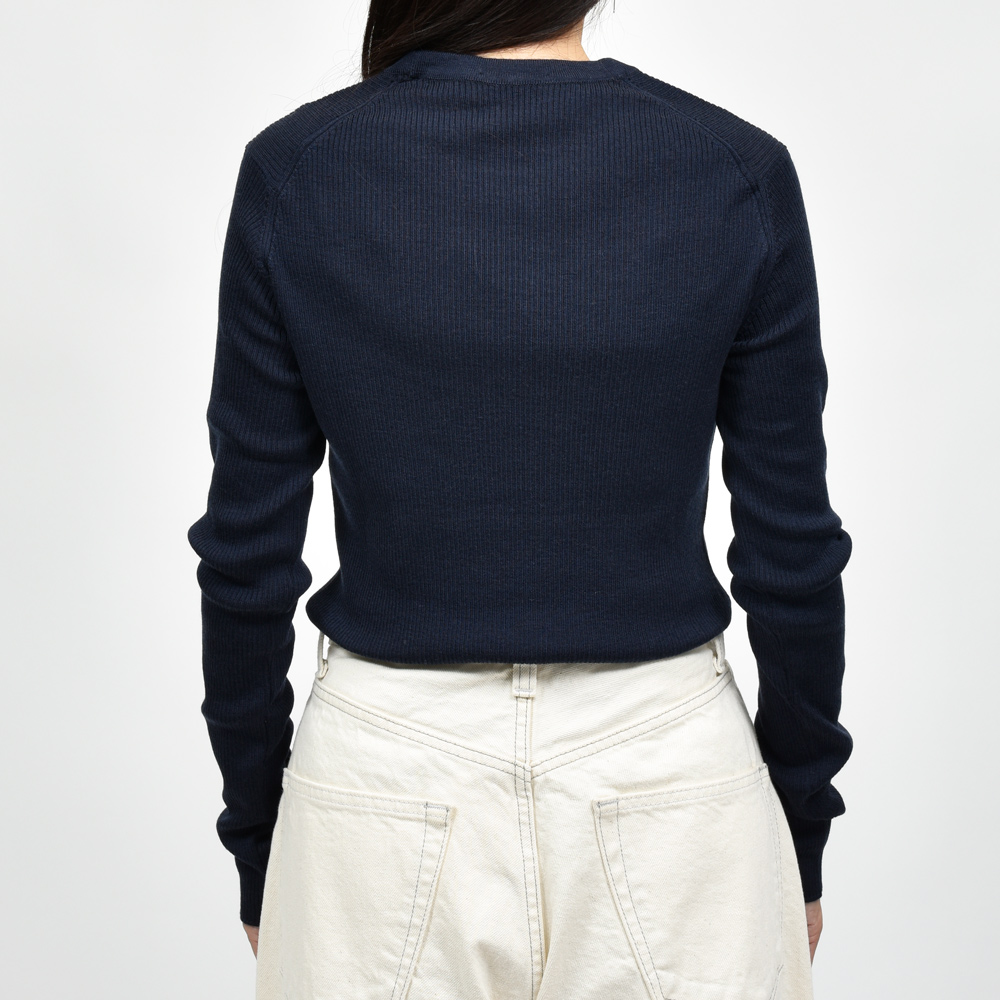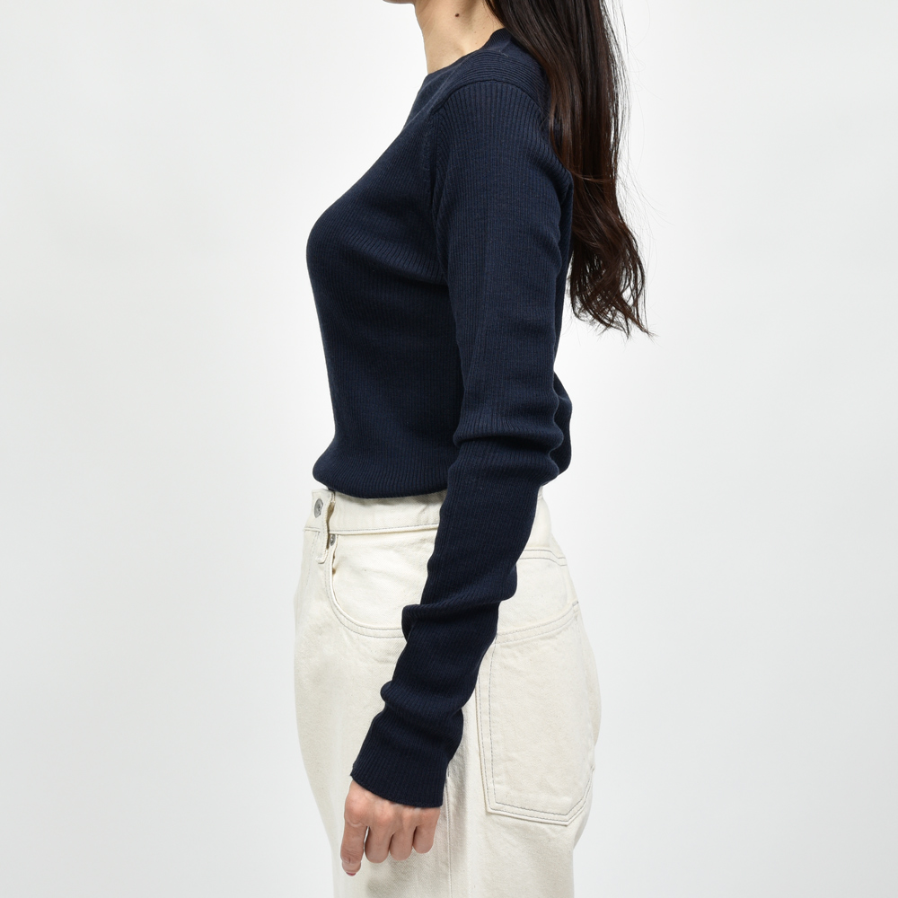 上質なメリノウールを使用した、シンプルで洗練されたクルーネックリブニット。
