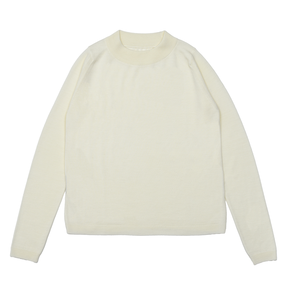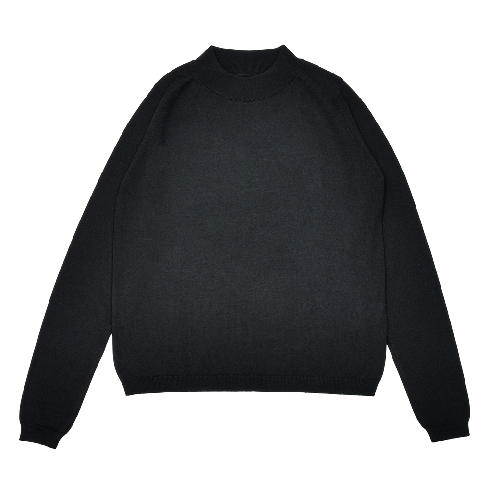 厚地の24ゲージニットで仕立てた、暖かみと上質さを兼ね備えたモックネックニット。