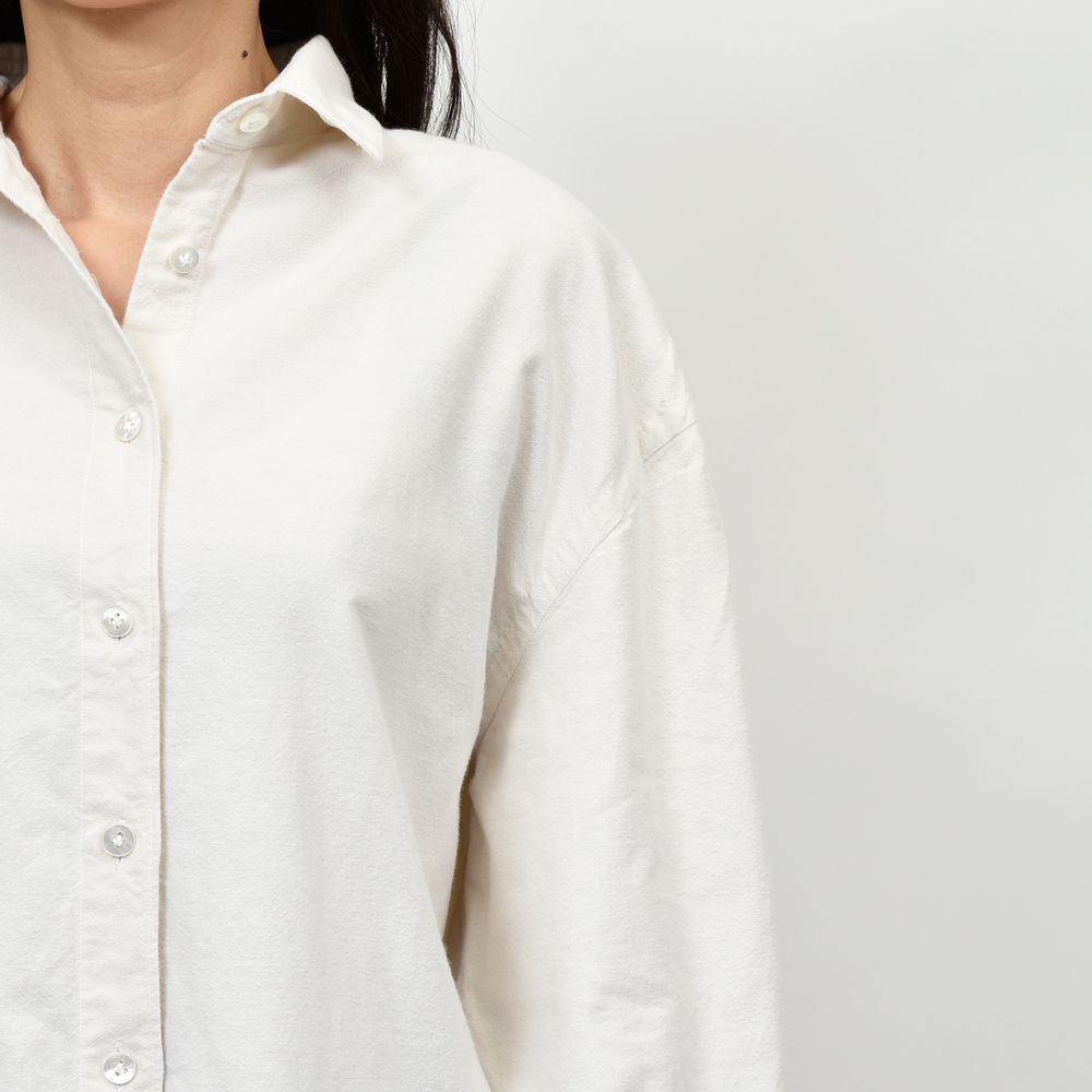 オックスフォード特有の程よいハリ感に加え、ブラッシング加工によるふんわりとした肌触りが特徴的です。