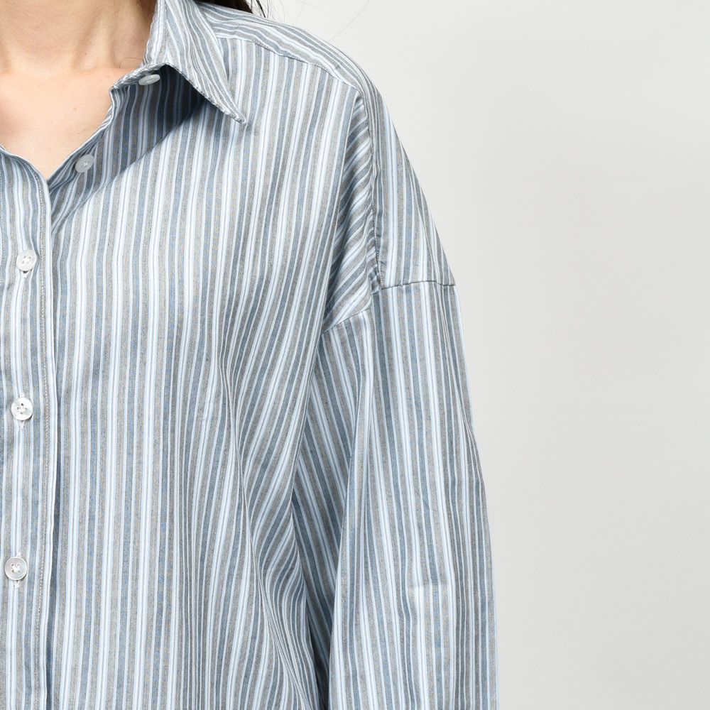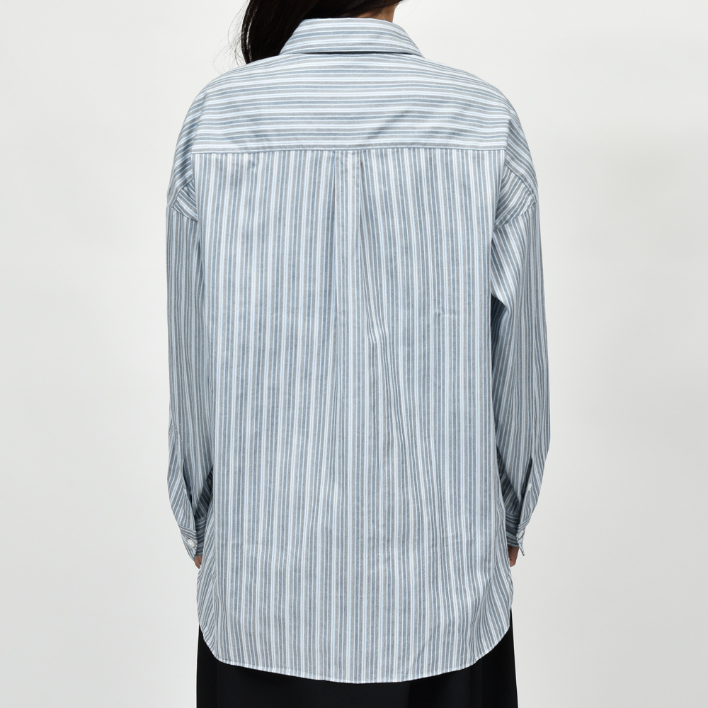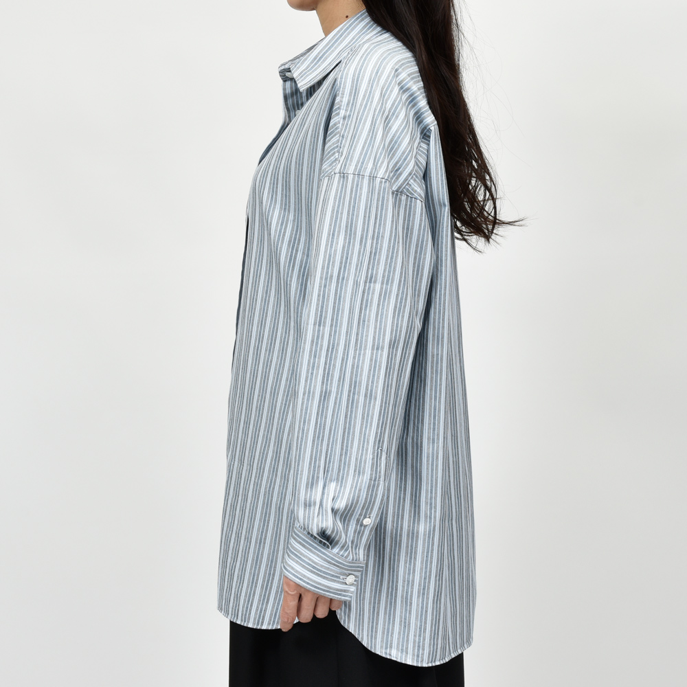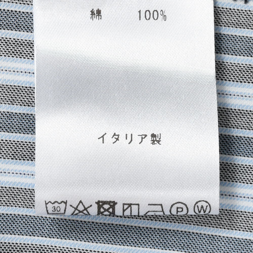 ライトブルーの清涼感に、マルチカラーのストライプがアクセントを加え、華やかさと上品さを兼ね備えた一枚です。