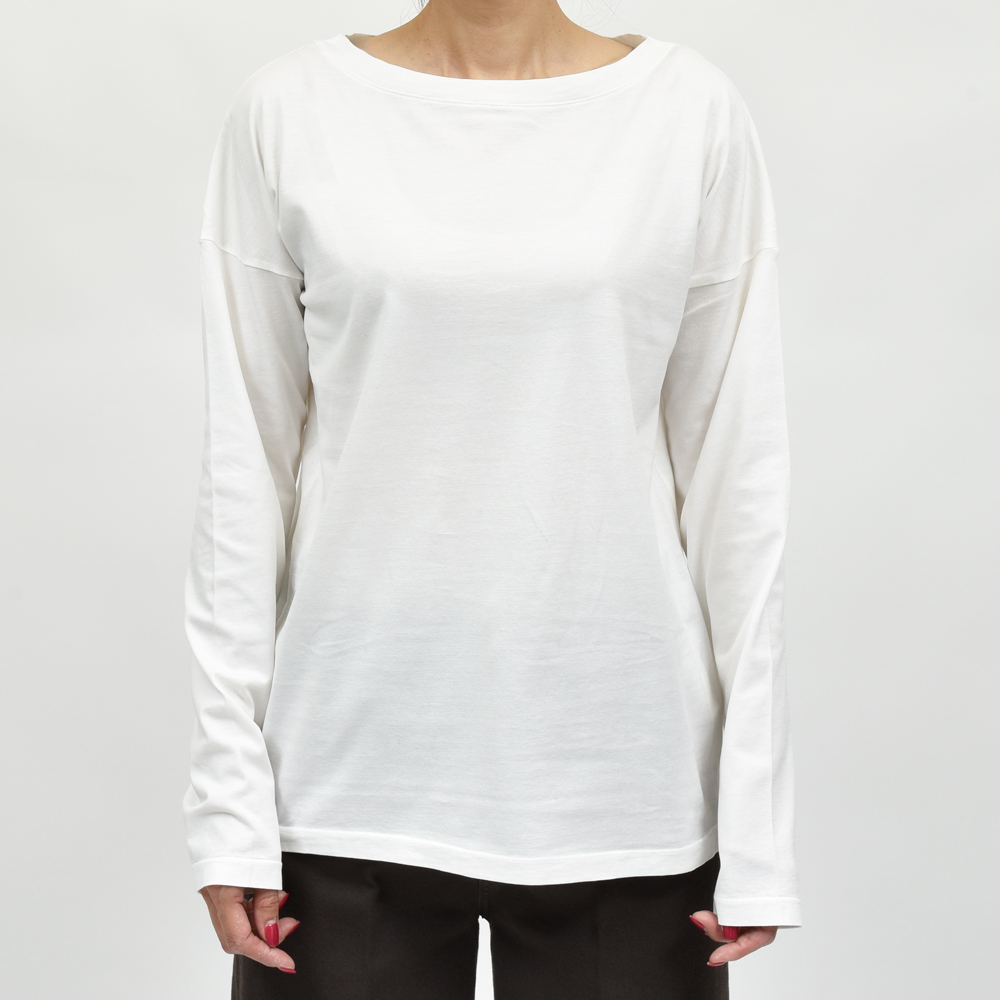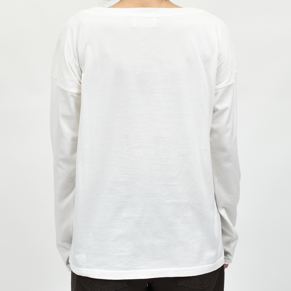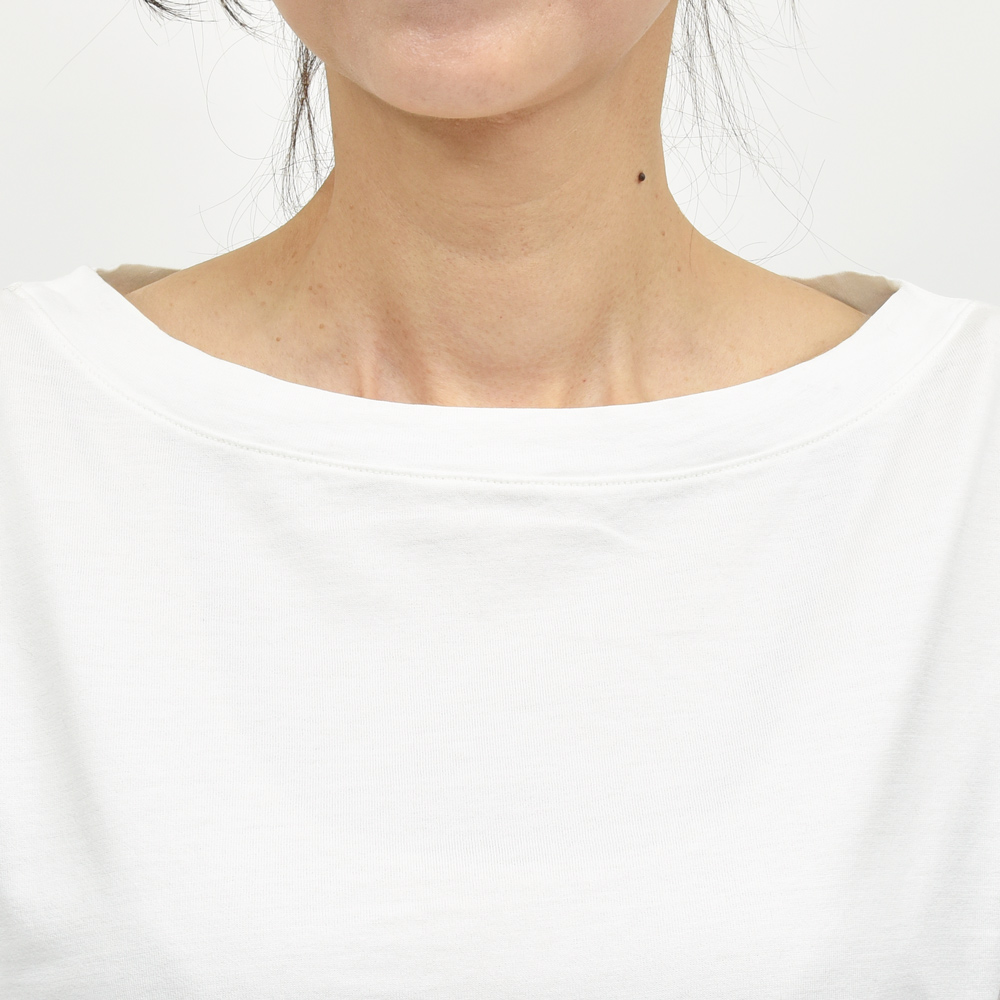 ゆとりのあるネックラインが、顔周りをスッキリ見せ、アクセサリーやジャケットとのレイヤードも美しく決まります。