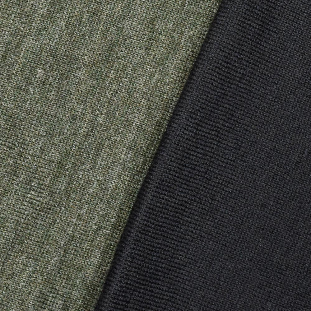 深みのあるカーキとブラックの落ち着いた色合いは、装いに洗練された印象を添え、秋冬のスタイルにマッチします。