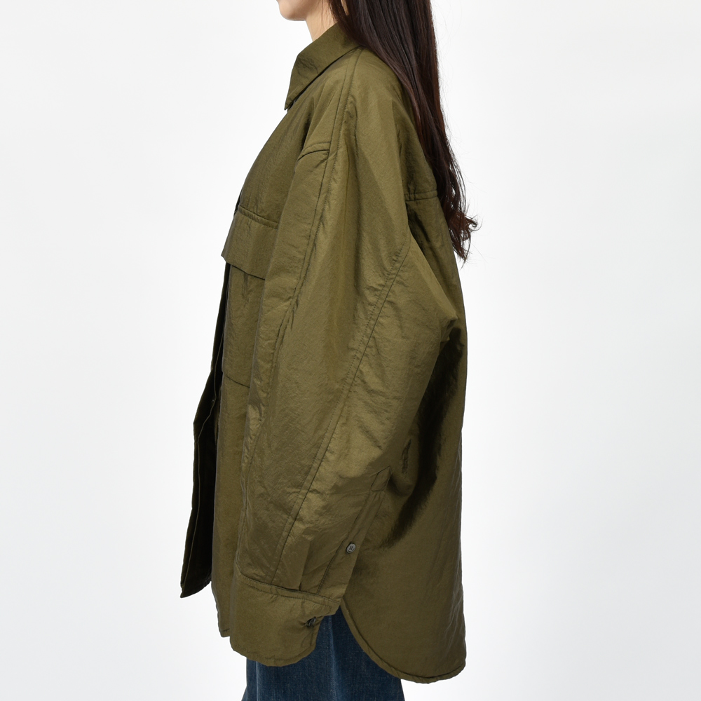 軽やかなナイロン素材に中綿を詰めた質感のあるパデッドナイロンシャツ。