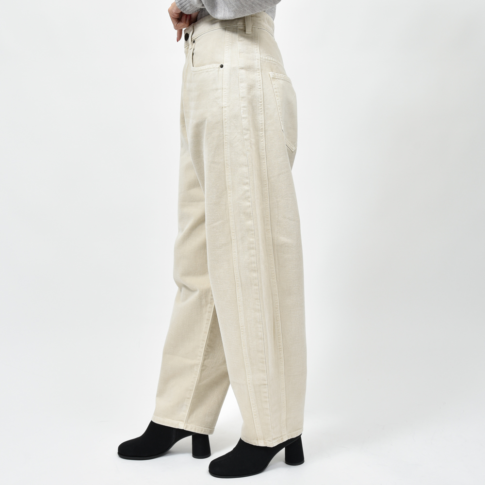 腰回りにゆとりを持たせ、裾に向かって緩やかに細くなる立体的なシルエットが特徴。