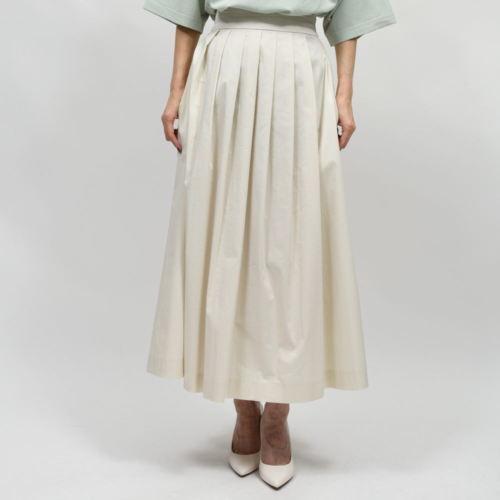 程よいハリ感と柔らかさを兼ね備えたプリーツスカート。