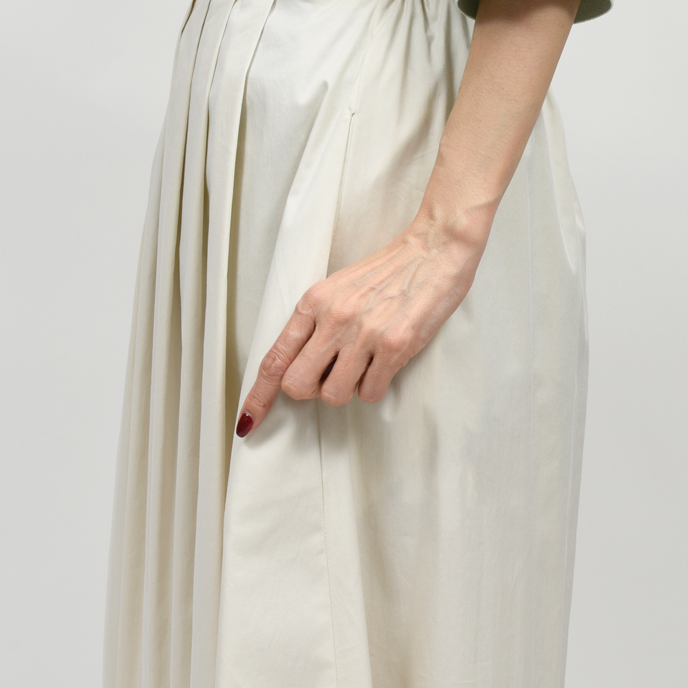 美しいプリーツラインがスタイリングに立体感を与え、カジュアルから綺麗めまでコーディネートに対応します。
