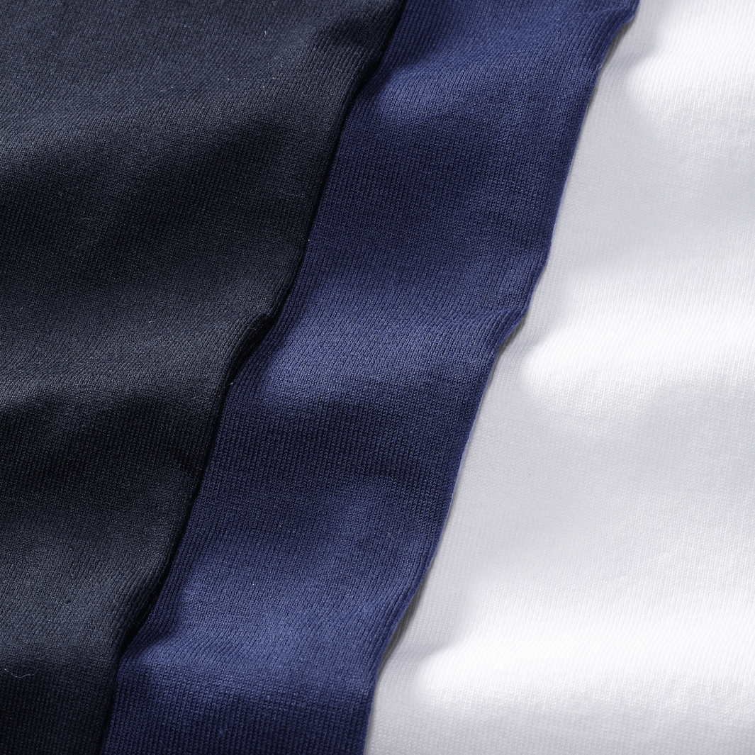・極めて滑らかな肌触りと伸縮性の高さによって着心地の良さは言わずもがな、のストレッチコットンジャージーを使用。季節を問わず快適に着て頂ける素材です。