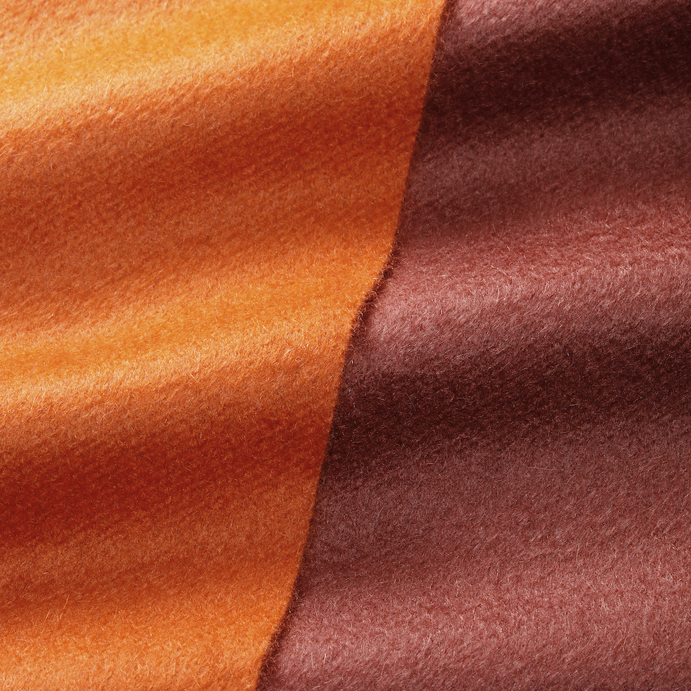 ・こちらはカシミア100%のビーバータイプ。その名の通り動物のビーバーのような毛並みを実現させるために、縮絨や剪毛などを行って毛を寝かせる工程(それをビーバー仕上げと言います)を経ています。独特の畝と艶やかな光沢が表現できるとても滑らか、そしてもちろん肌触り抜群の仕上がりです。