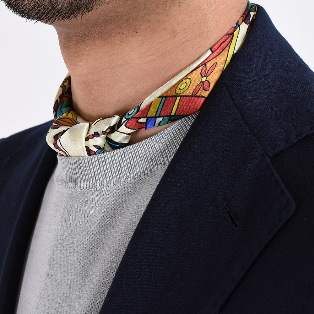 首元に挿すだけでキンロックの遊び心のある色とプリントが華やかに演出。シルクの光沢がスタイルをラグジュアリーに格上げしてくれる間違いのないアイテムです。
