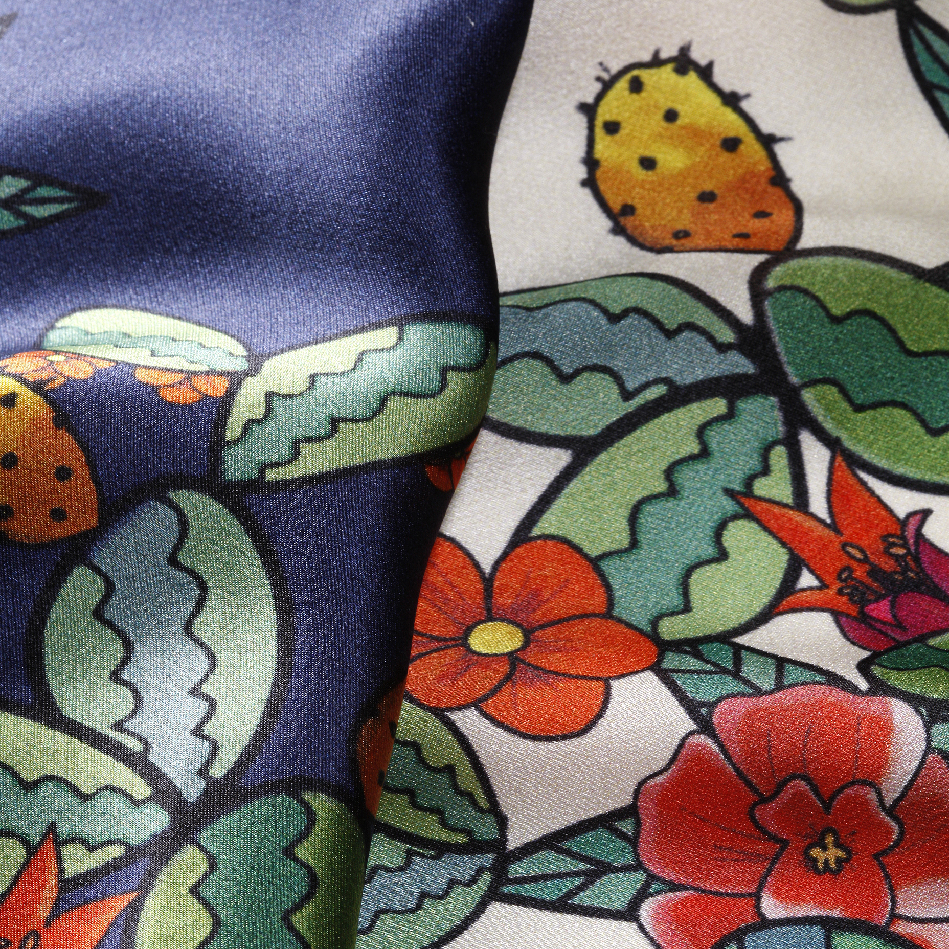 ・こちらはメキシコを象徴するサボテンをモチーフにしたもの。花は繊細、葉っぱはユーモラスなタッチで描かれており、そのコントラストが楽しい一枚です。