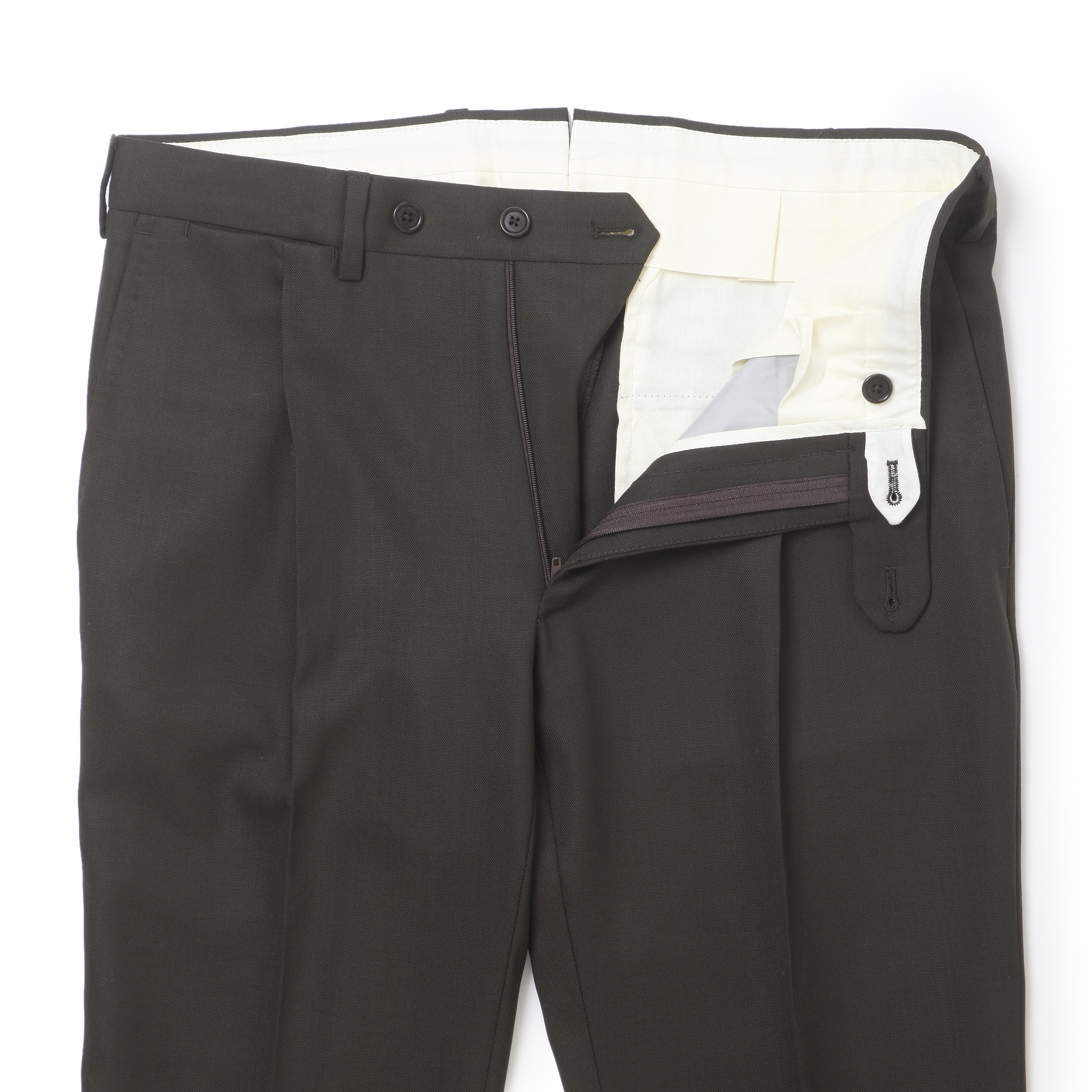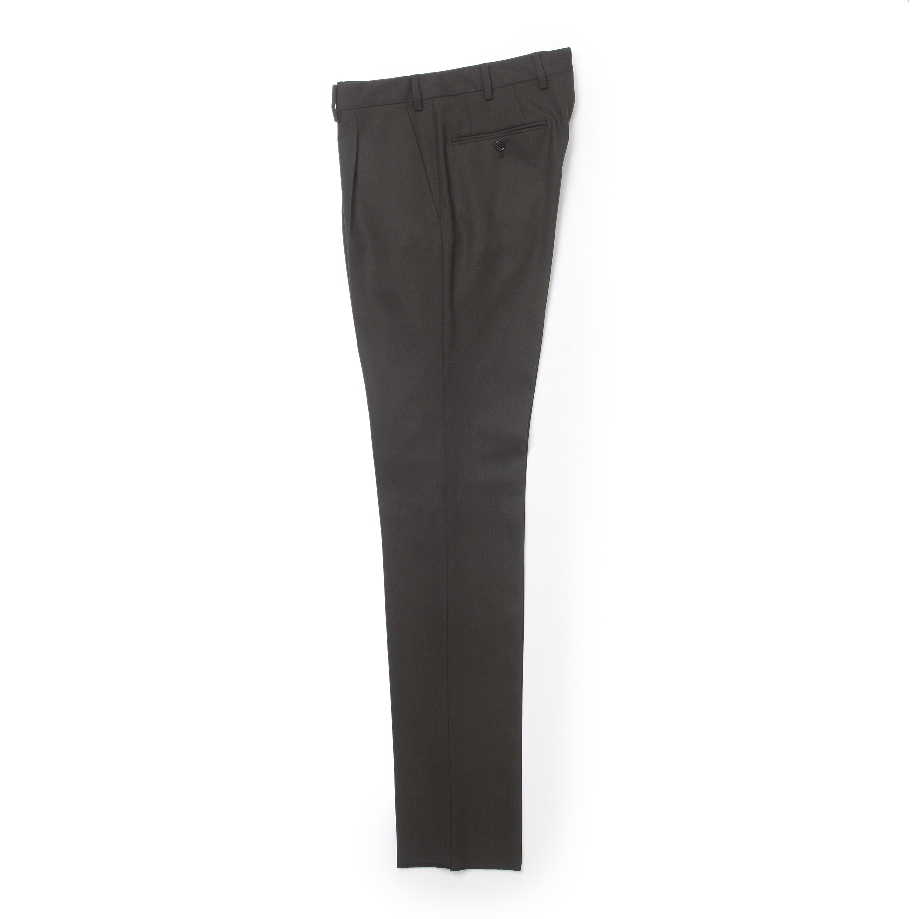 ・パンツは「De petrillo(デ ペトリロ)」の中でスタンダートフィットの1プリーツをセレクトしました。適度な股上で腰廻りをホールドし、ワタリからスソに向かってなだらかにテーパードする穿く人を選ばない好シルエット。
