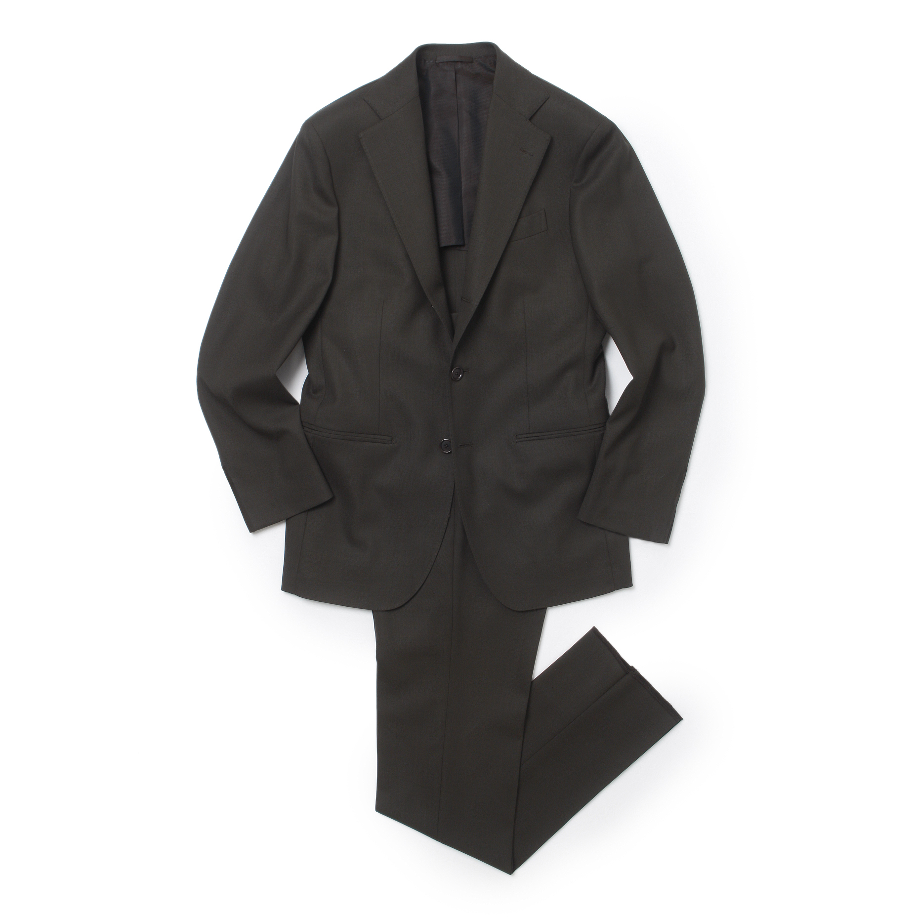 ・注目すべきはこの色合い。野暮ったさは皆無の都会的なブラウンです。やや濃色なものの、フレスコ織りゆえの清涼感ある見た目も特徴。目付は320グラムです。