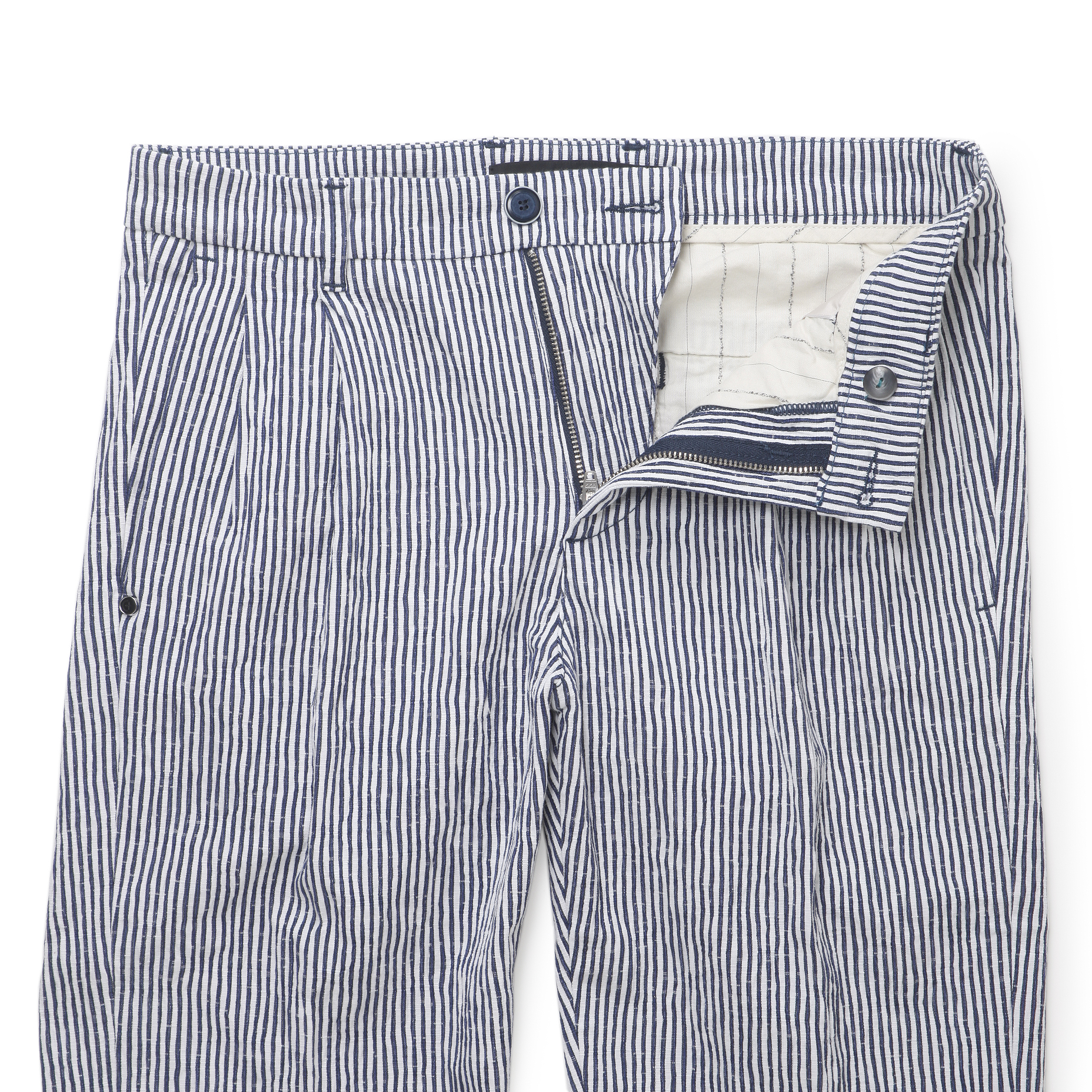 ・生地はストレッチのシアサッカー。ストライプ柄がトレンドとされている中で、今シーズン特に注目を集めています。