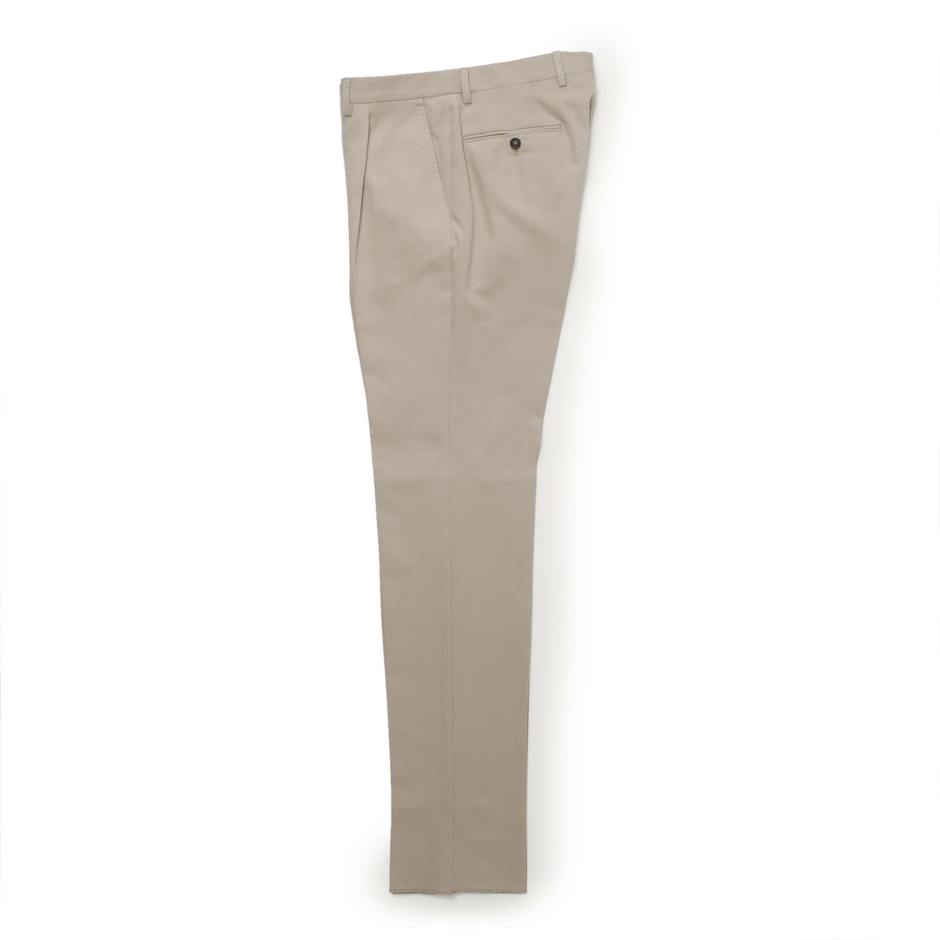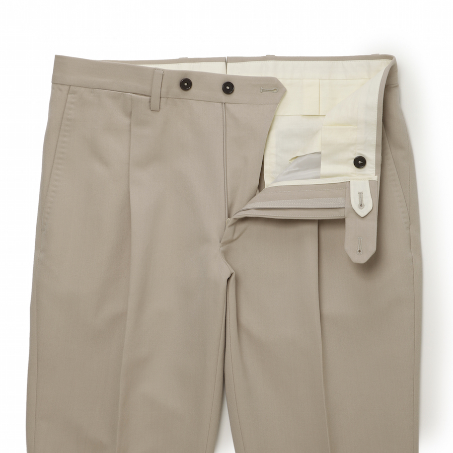 ・パンツは「De petrillo(デ ペトリロ)」の中でスタンダートフィットの1プリーツをセレクトしました。適度な股上で腰廻りをホールドし、ワタリからスソに向かってなだらかにテーパードする穿く人を選ばない好シルエット。