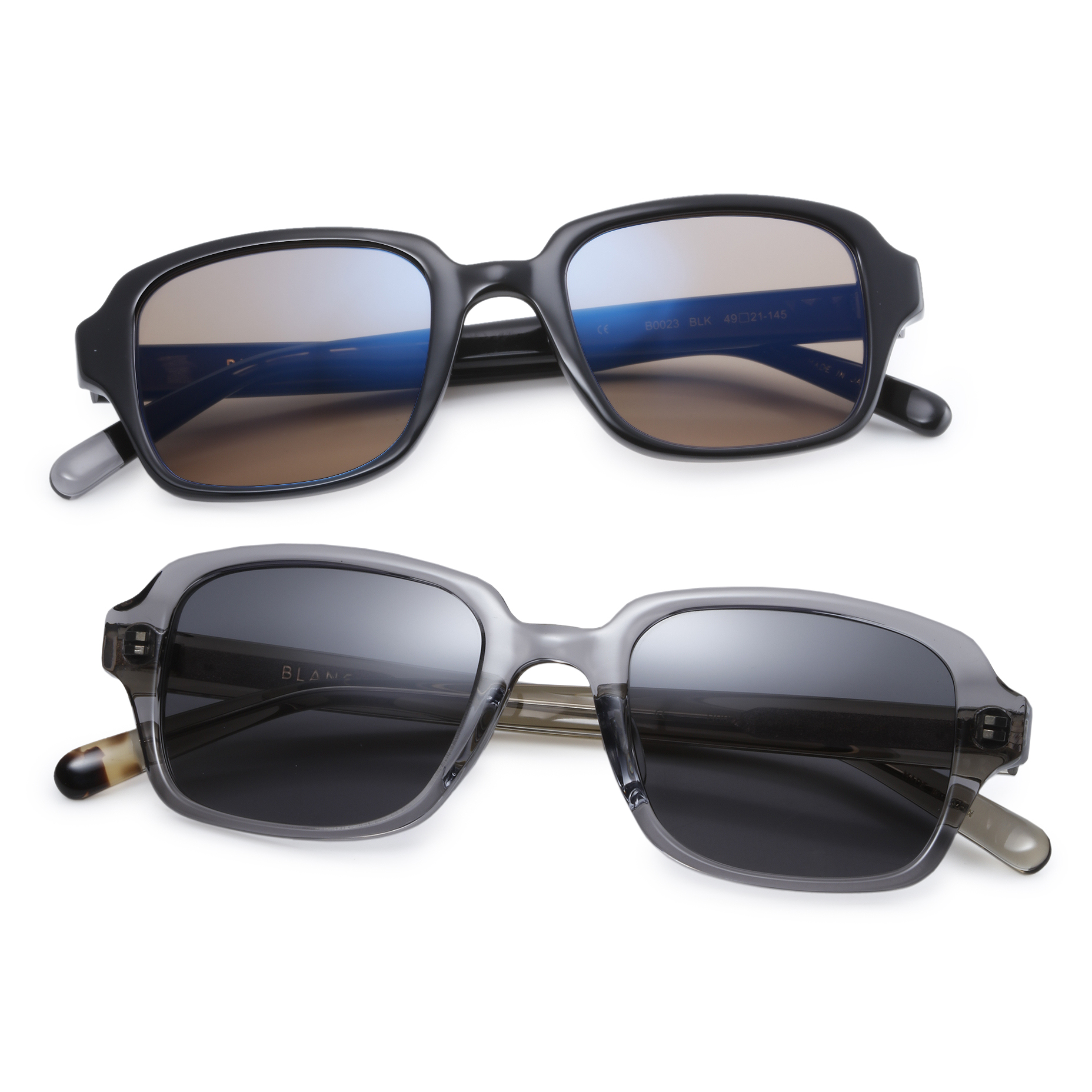 ・グレーはクリアフレーム、ブラックはレンズがブラウン×ブルーのハーフミラー仕様ゆえ、それぞれ軽快さが魅力です。