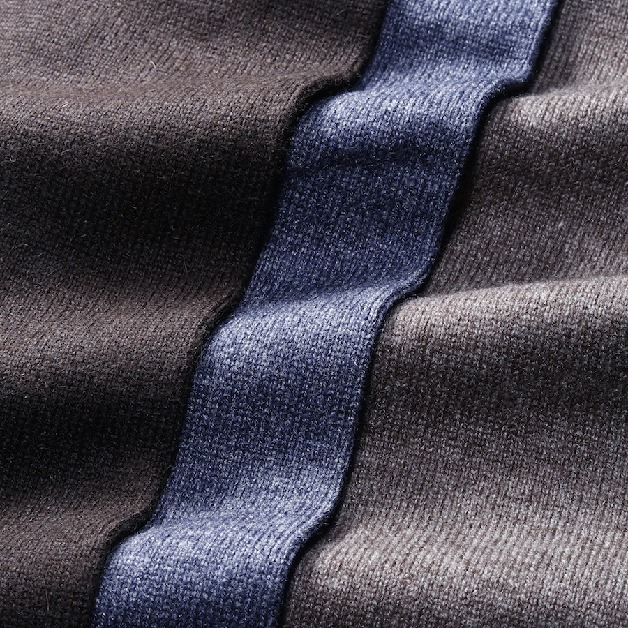 ・1プライのカシミア100%編み地から今シーズンはカシミア50%・シルク50%の通称"シルカシ"編み地に変更!これによって毛羽立ちが抑えられ、ヌメり感あるタッチとツヤ感が増しました。