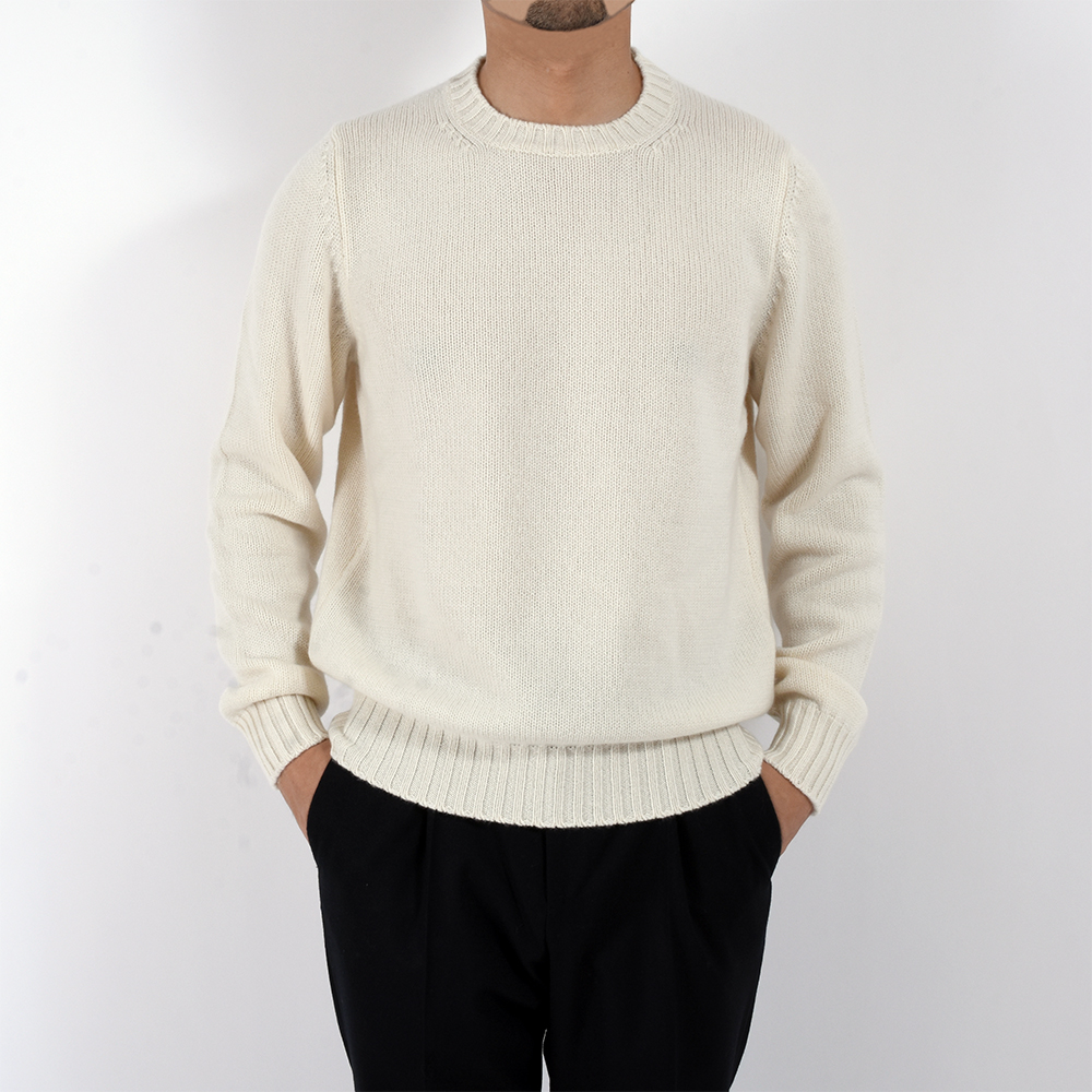 ・ミドルゲージのオーガニックカシミアをふんだんに使ったクルーネックニットは今シーズンの「FEDELI(フェデーリ)」の目玉と言えるコレクション。