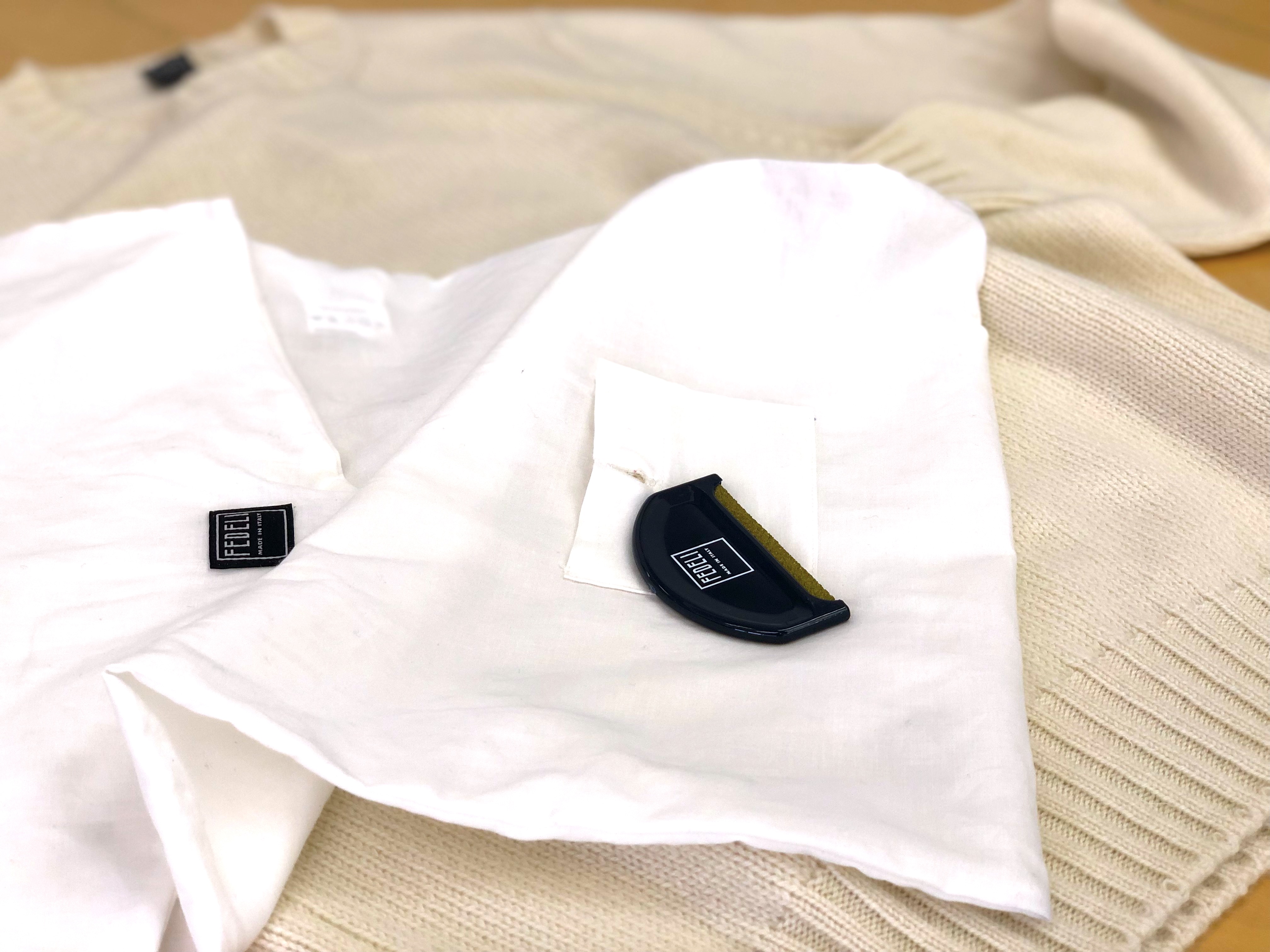 ORGANIC CASHMEREシリーズには、専用袋と毛玉取りコームが付属します