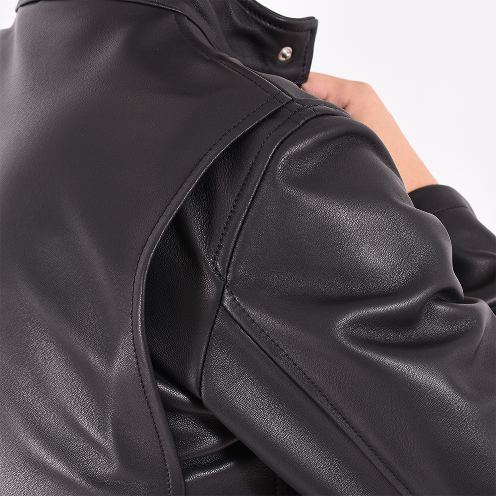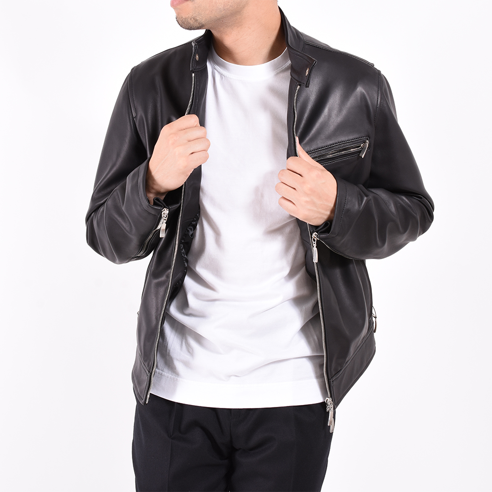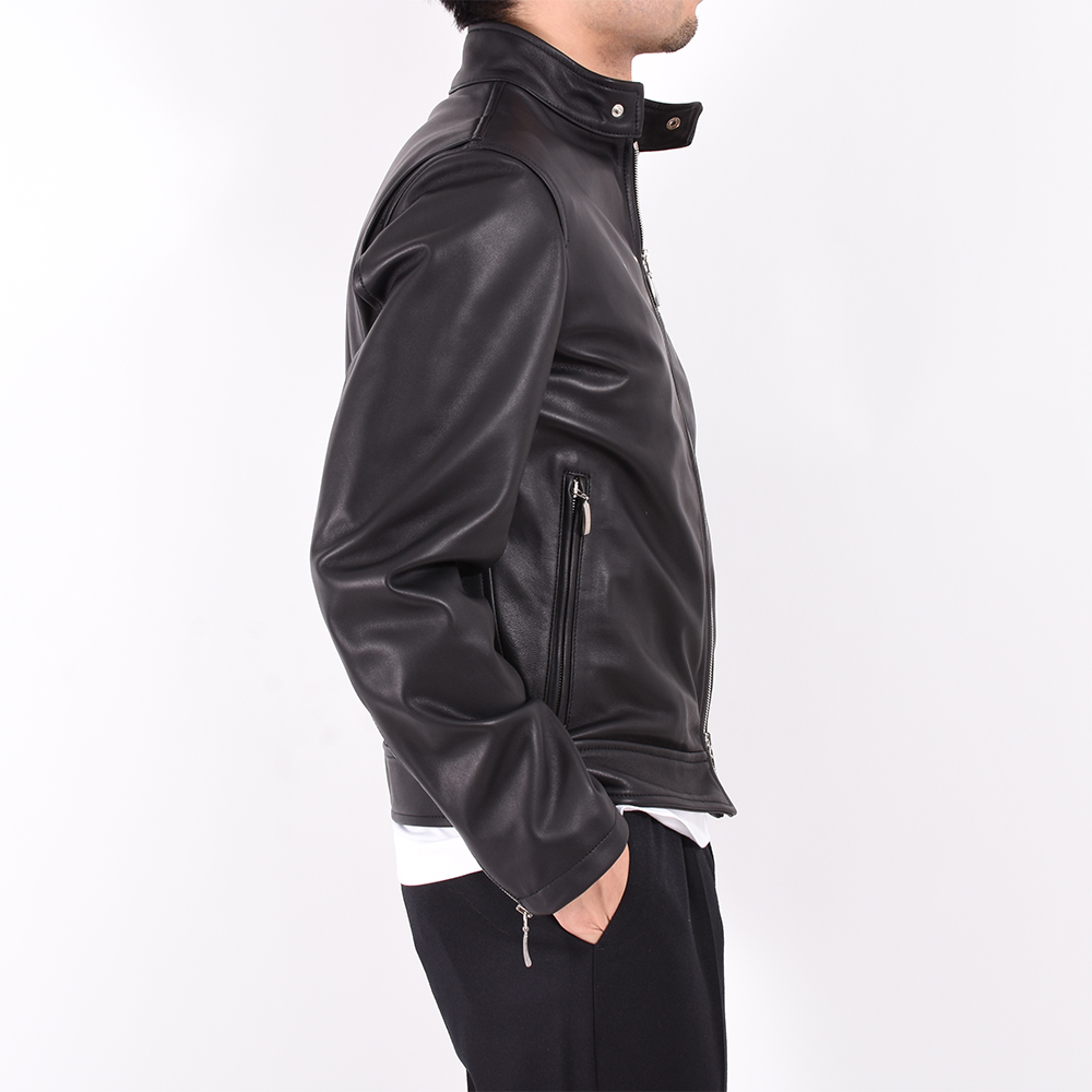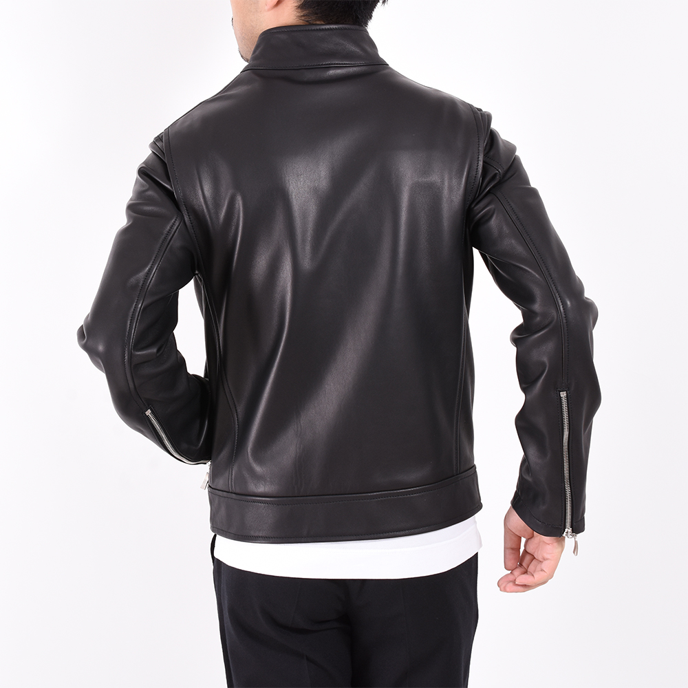 非常に滑らかな肌触りの柔らかい革を使用しているこちらのライダースは、すぐに身体に馴染むでしょう。肩後ろの両サイドのプリーツによって、腕の可動域を多く取っているのでライダース特有の窮屈さはまったくございません。