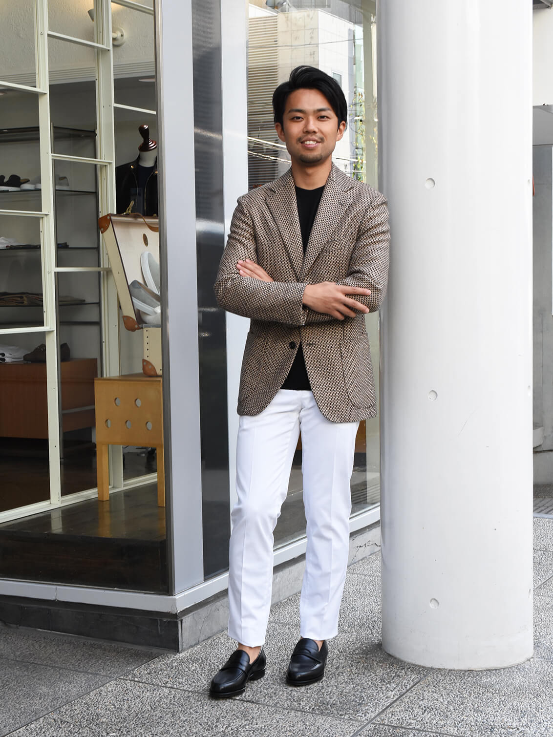 ・ジャケットのモデルはハーフキャンバス仕立て3つボタン2パッチポケットの"POSILLIPO"。スタンダードな9センチの襟幅でほんのりエレガントな仕上がりに。ドロップは8です。