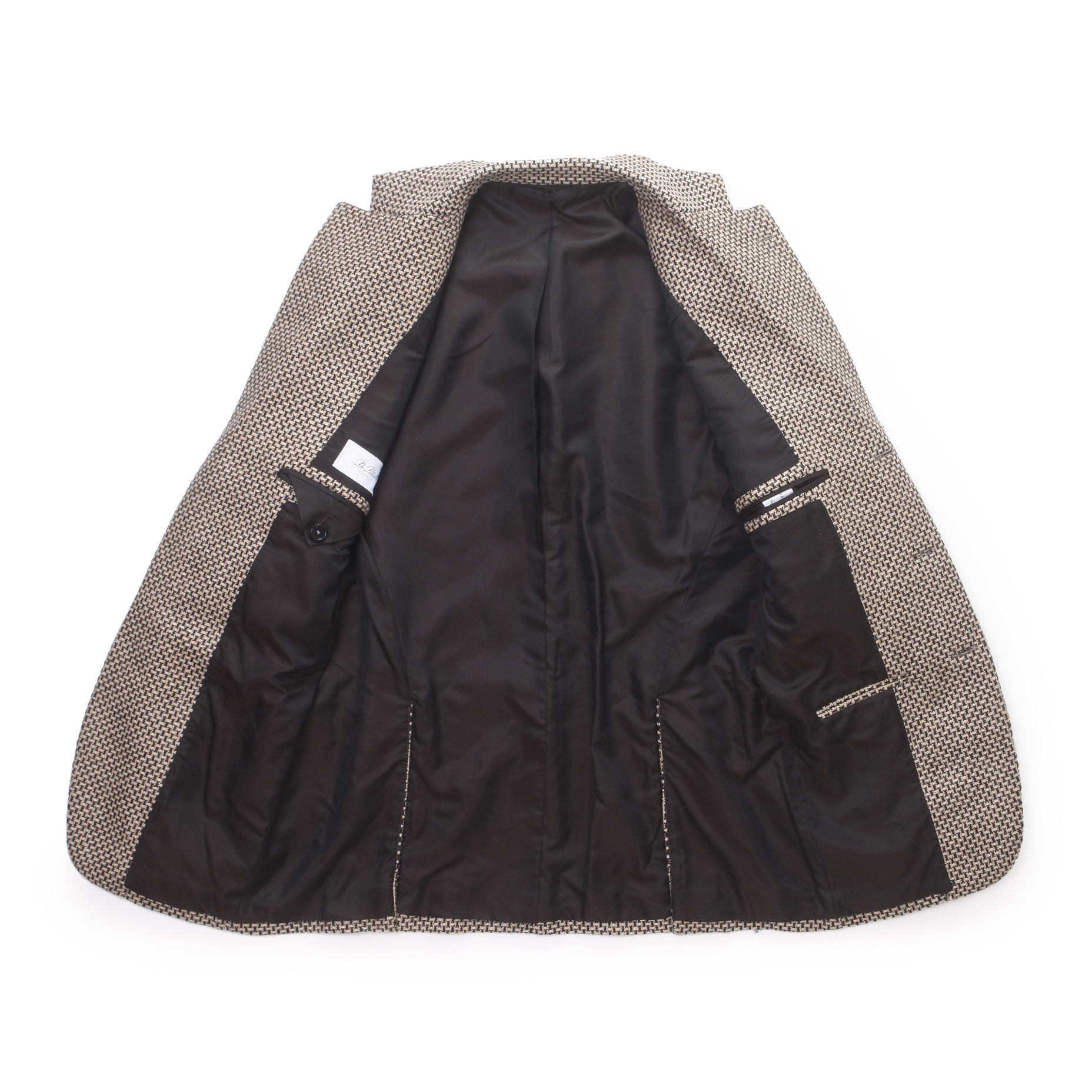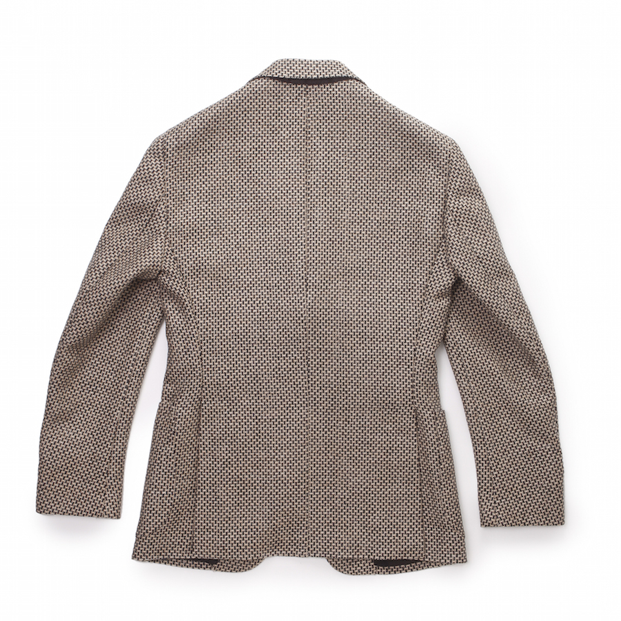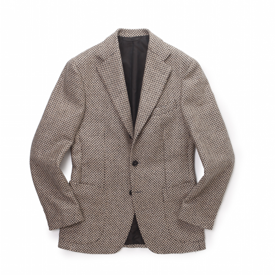 ・ベージュとブラックというモダンな色合わせとほんのりツイーディなバスケット織りが組み合わさった、これぞペトリロと言える一着。