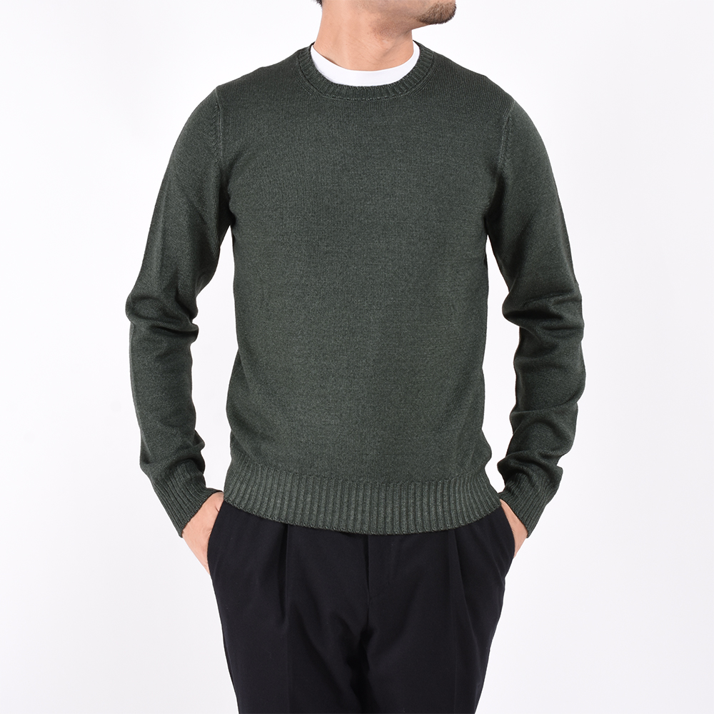 ・クオリティーとコストパフォーマンスの高さを両立させるニットメーカー「GRAN SASSO(グランサッソ)」。その得意技である製品染め(ヴィンテージフィニッシュ)を施した1枚です。この仕上げならではのスモーキーな雰囲気をいろいろ楽しんで頂けるよう全5色にてご用意しました。