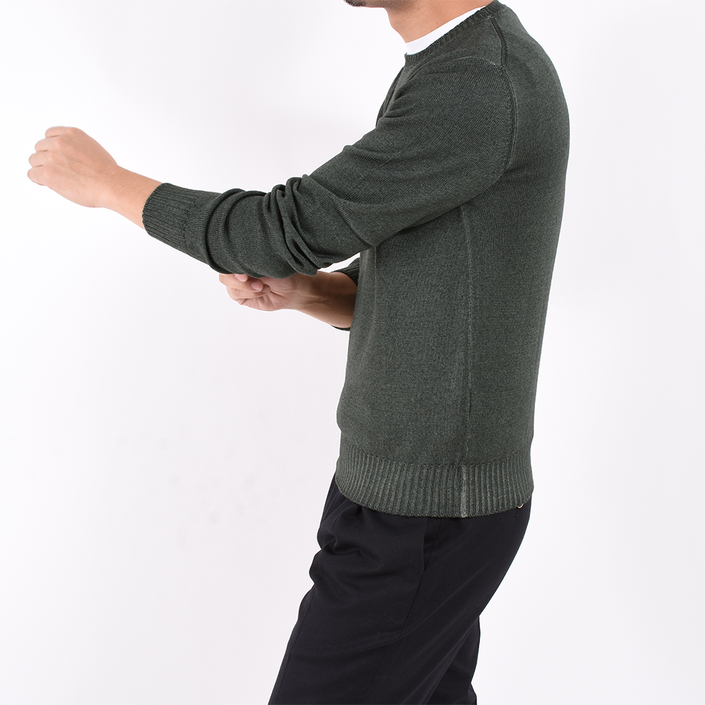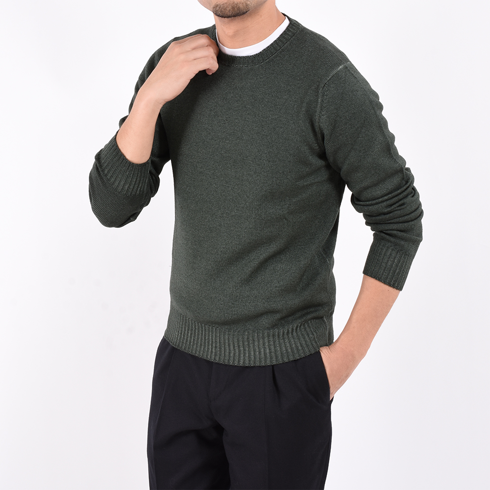 ・ミドルゲージ糸から漂うカジュアル感と製品染めの雰囲気が見事にマッチ。存在感あるリブによってスポーティにも着こなせる1着に。