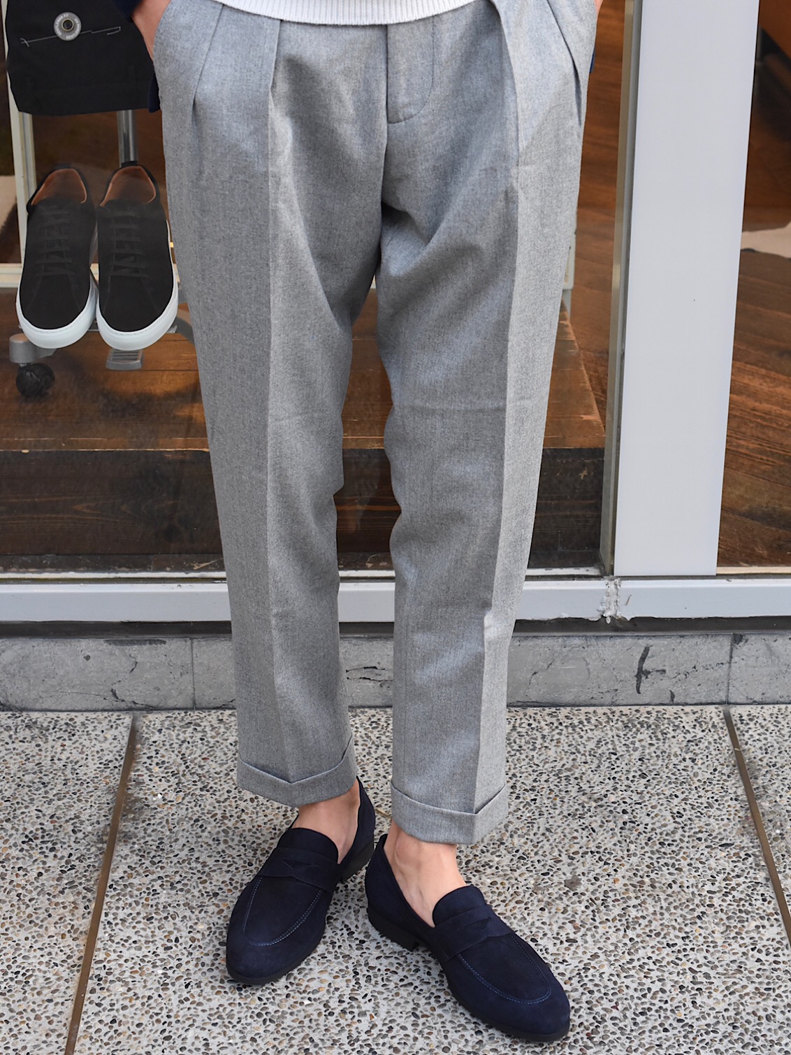 ・生地は高品質な幅広いコレクションでお馴染みの"VITALE BARBERIS CANONICO(ヴィターレ・バルベリス・カノニコ)"。柔らかく控えめな起毛感が特徴のライトフランネル。ゆとりあるシルエットによる生地の落ち感が秀逸です。2色にてご用意しました。