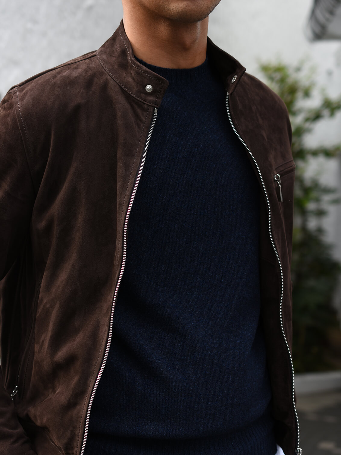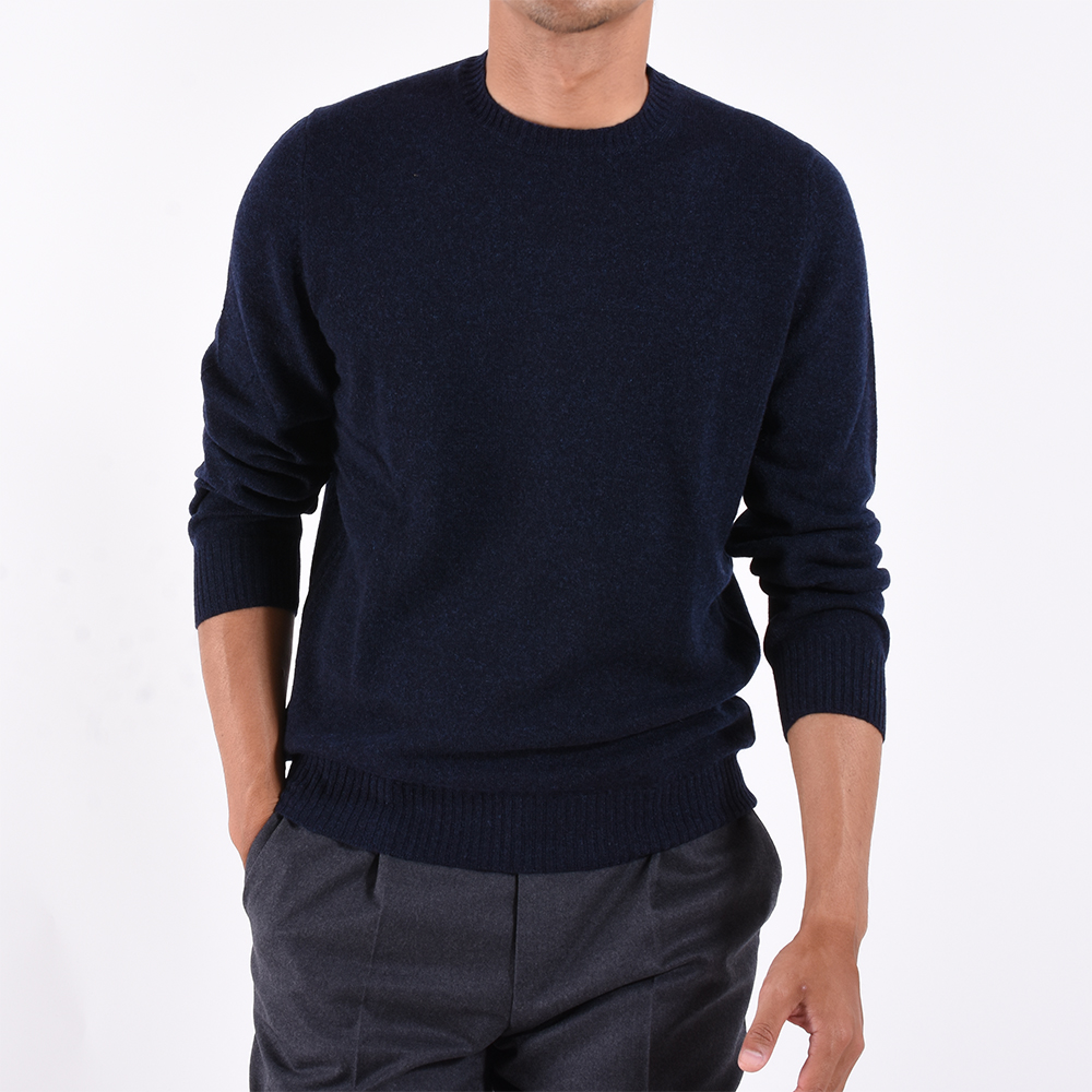 ・ニットの名門「FEDELI (フェデーリ)」が使うカシミアはカシミアの中でも純度が高いものに限られます。それゆえ"ピュアカシミア"というわけ。こちらはそのピュアカシミアのハイゲージ糸を使いプレーンに仕上げられた一枚。また「FEDELI (フェデーリ)」ではカシミア原毛を色によって使い分けています。ホワイト原毛は薄い色目、ブラウン原毛は濃い色目に染め分けることで鮮やかで深みある色合いを実現。