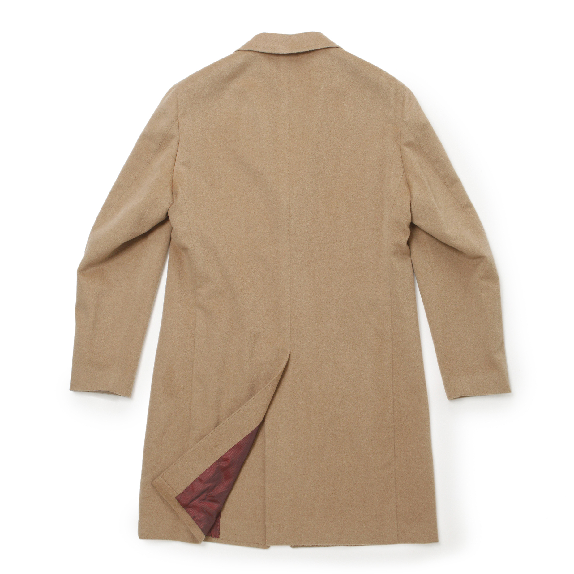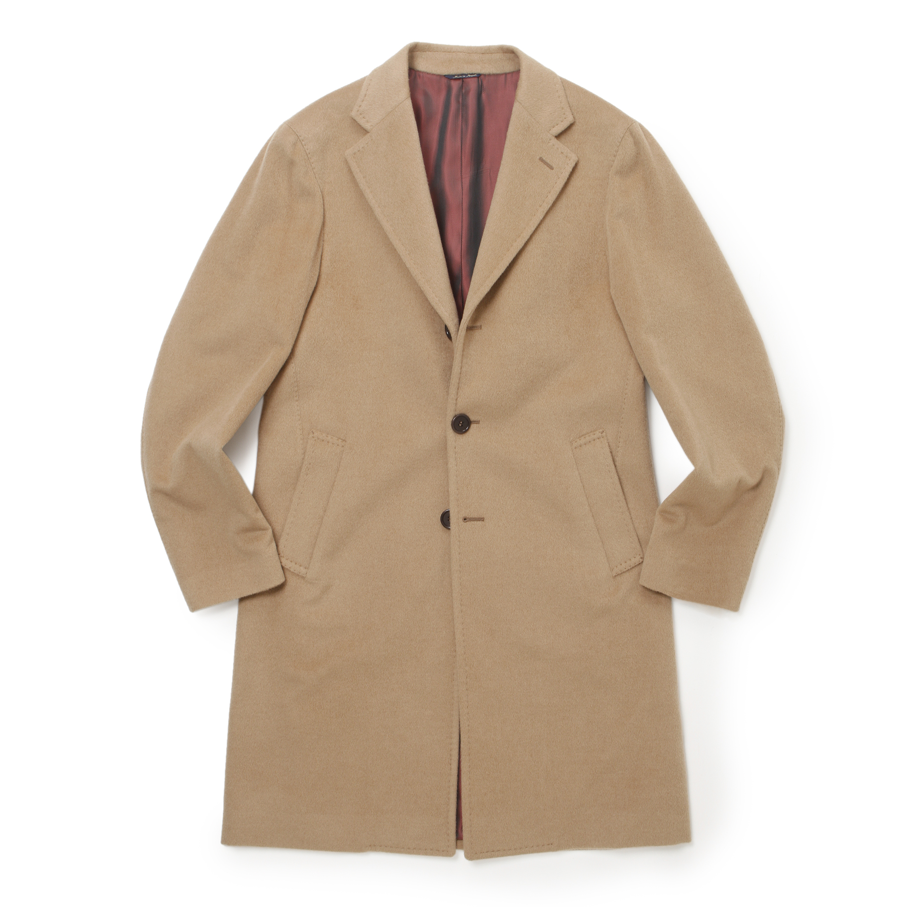 見て分かる。そして触っても分かる、素材の良さは半端じゃないです。そして、生地のブランドタグを見たところ、ロロピアーナのベビーキャメルヘアを使用している事に気付きました。ベーシックなシングル3Bコートは流行り廃り問わず着用が可能ですので、一生物になるのは間違いなし。細身体型でジャケットの上からサイズ46を着用し着丈は膝上7cm程で、サイズ感はピッタリでした。普段選ばれているサイズでよろしいかなと。
