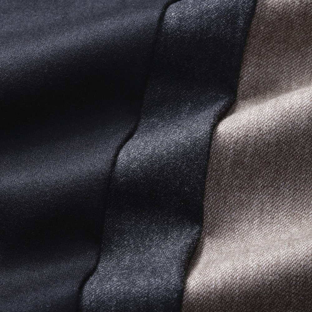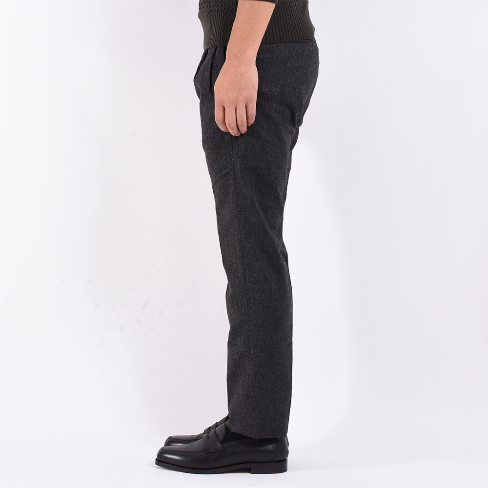 細身なシルエットですが、ツープリーツで腰回りにゆとりを確保している為非常にラクに着用ができ、尚且つシルエットはシャープに見せてくれます。生地はストレッチが効いたウール混なので、ソフトな肌触りが◎そして、カジュアル使いはもちろん、ジャケパンでの着用もできるのは良い点。細身体型でサイズ29を着用しぴったりでした。普段選ばれているサイズでよろしいかなと。