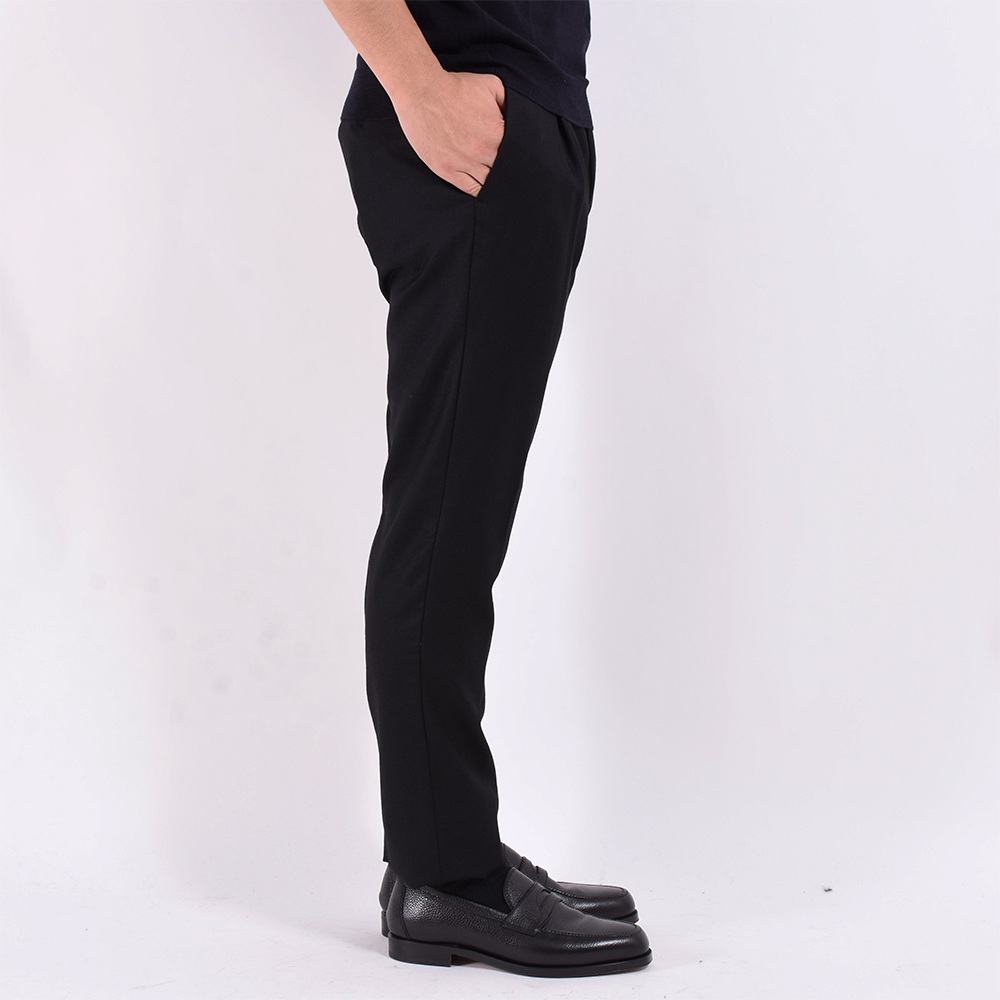 遂に登場??ベーシックなワンプリーツで腰回りに少しゆとりがあるものの、テーパードが効き非常に綺麗なシルエットに仕上がっています。カシミア混の生地感なのでほんのりと光沢があり、ベーシックなのに上品に見せてくれる一本はジャブスゴールドならでは。革靴はもちろんですがスニーカーでのカジュアルスタイルにも合わせて頂きたいです。細身体型でサイズ42を着用しぴったりでした。普段選ばれているサイズでよろしいかなと。