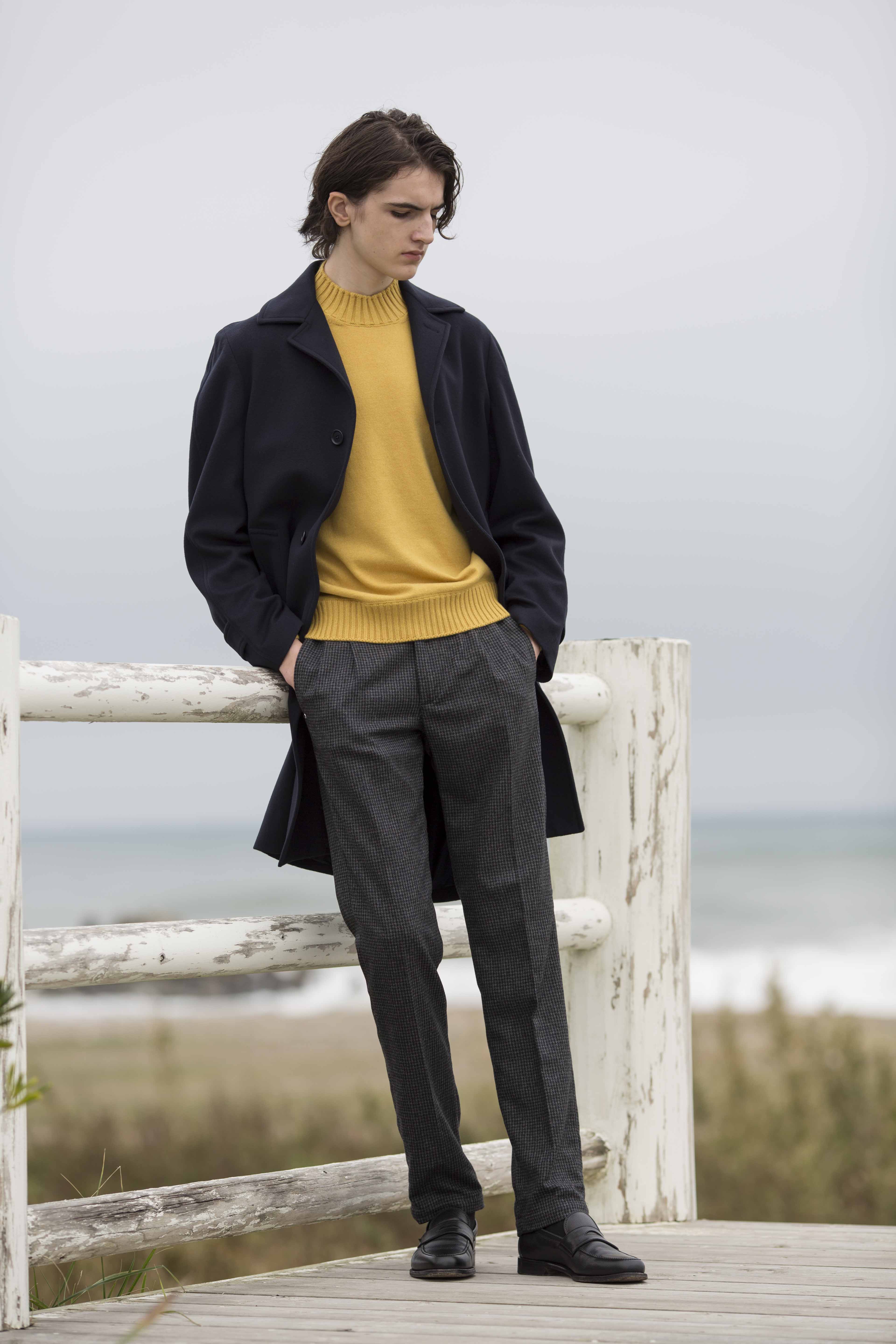 細身なシルエットですが、ツープリーツで腰回りにゆとりを確保しているため、非常にラクに着用ができ、尚且つ全体的なシルエットはシャープに見せてくれます。少しザラっとしたウールの生地感は、秋冬らしい風合いです。そして、カジュアル使いはもちろん、ジャケパンでの着用もできるのは良い点。レザージャケットと一緒に合わせたいなと思いました。細身体型でサイズ29を着用しぴったりでした。普段選ばれているサイズでよろしいかなと。