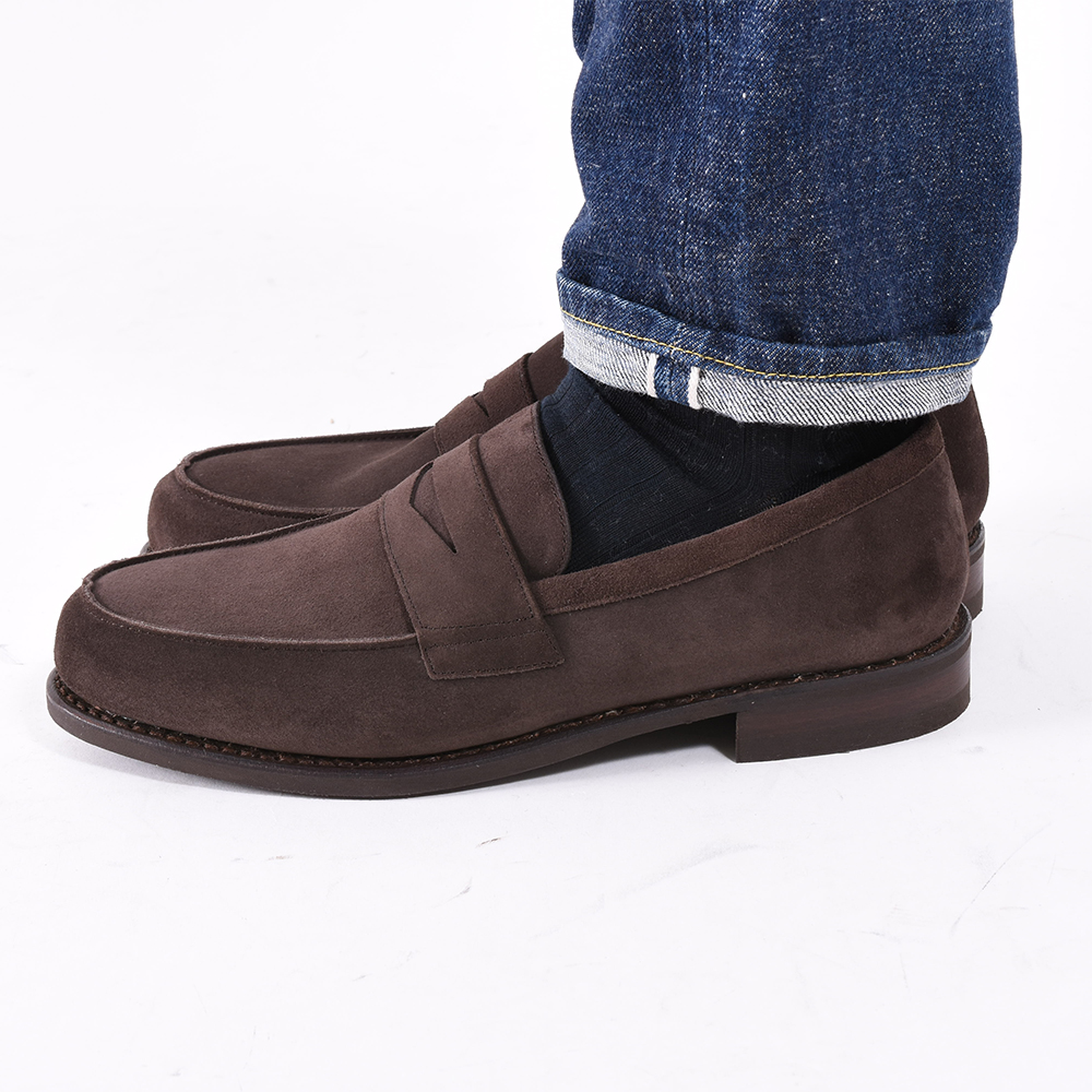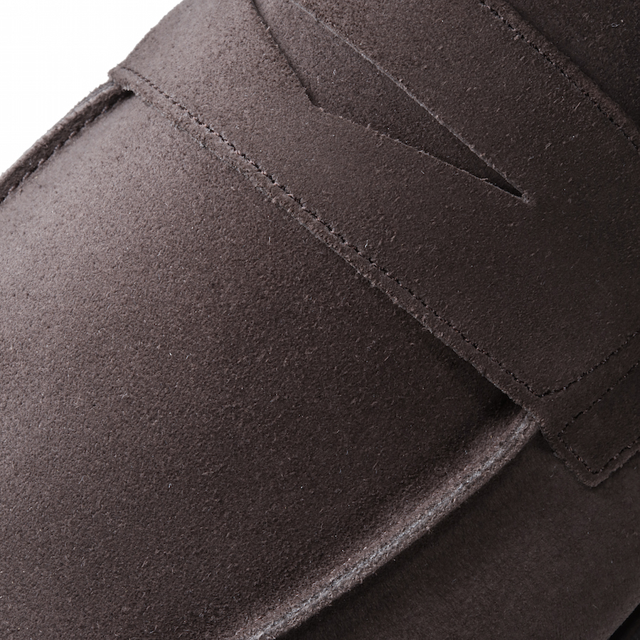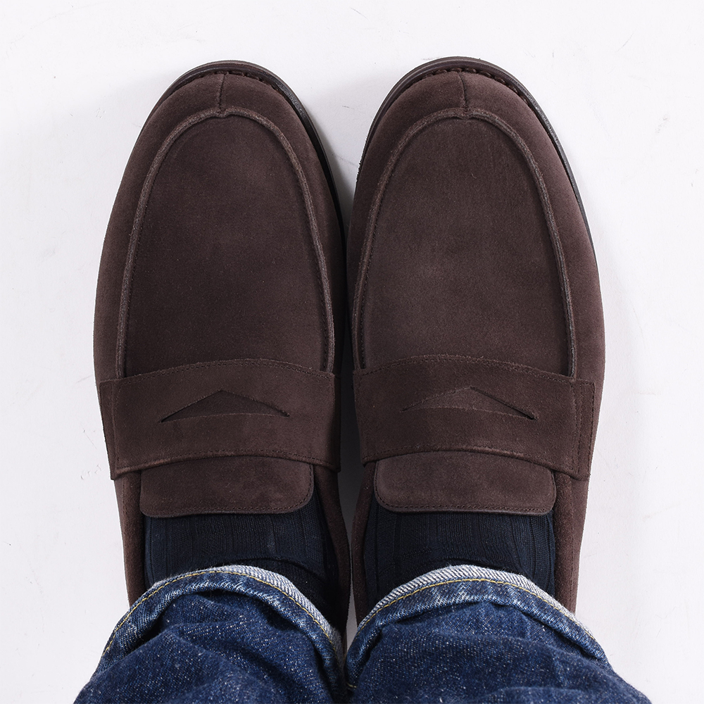 ・アッパーのベロアレザーは程よく柔らかさがありながら堅牢です。色はダークブラウン(CONGO)をセレクト。品のあるルックスによりカジュアルスーツからデニムまで幅広いコーディネートに合わせることができます。