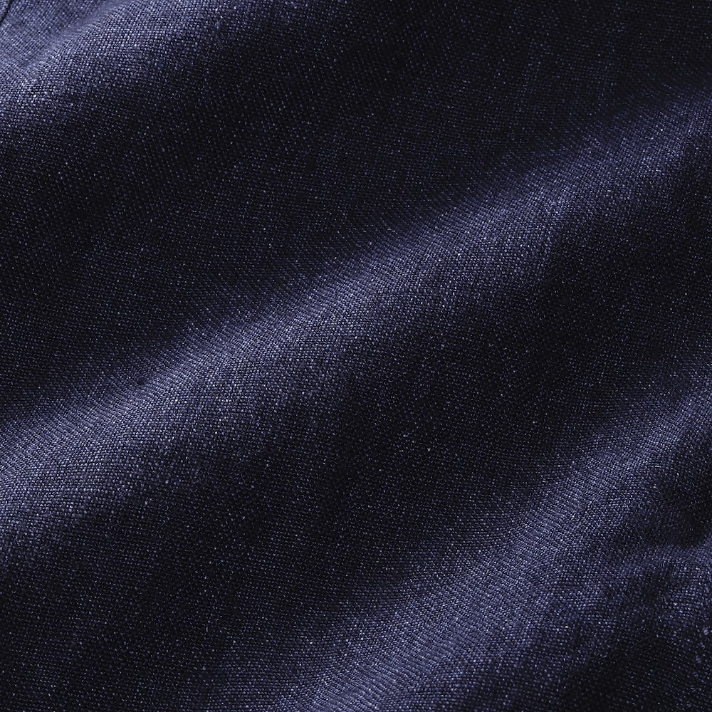 リネン100%なのでラフに着れるのに、深みのあるネイビーが非常に落ち着いた印象に。ザラっとした触り心地を想像されると思いますが、非常に柔らかく仕上げられた生地はほんのり滑らかさすら感じさせます。ですがリネンが持つ独特の風合いは損なわれていません。