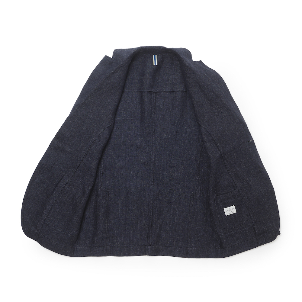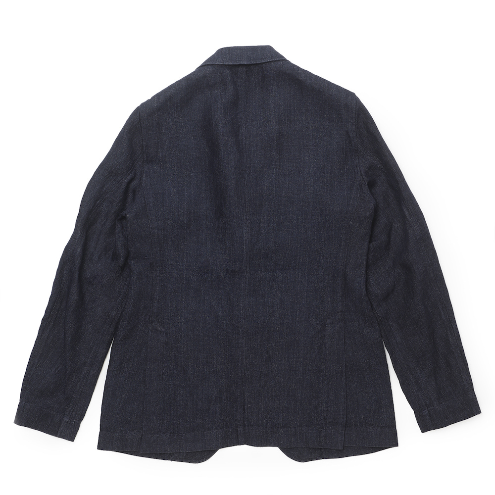・一枚仕立ての軽さや柔らかさはそのままに、力が掛かる背中上部には共地が貼られ補強、ショルダーラインやフロントの見え方に大きく影響する前身頃は大見返し仕様となっていて、軽い作りのテーラードジャケットと比べても何ら遜色のない作りです。