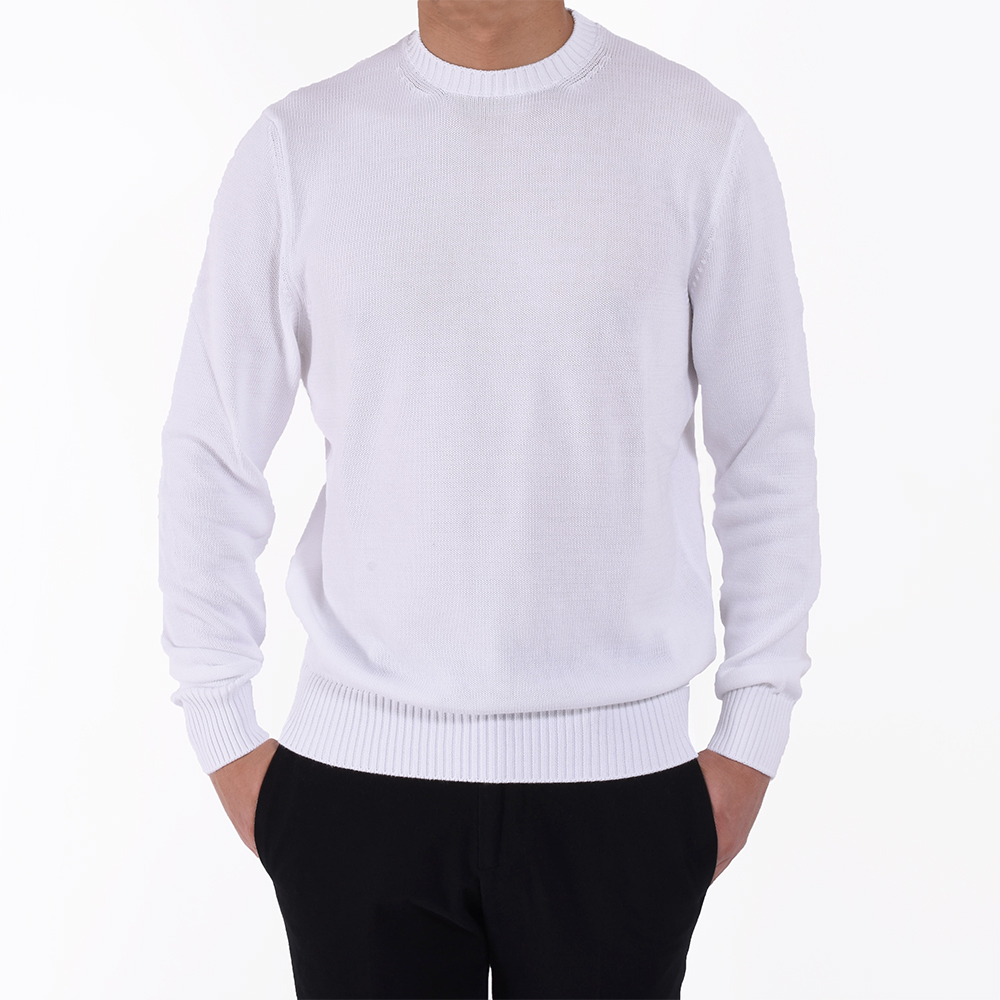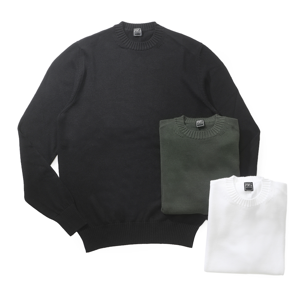 ・世界三大綿の一つに挙げられる高品質なスーピマコットンを使用したミドルゲージ(8ゲージ)のクルーネックニットです。