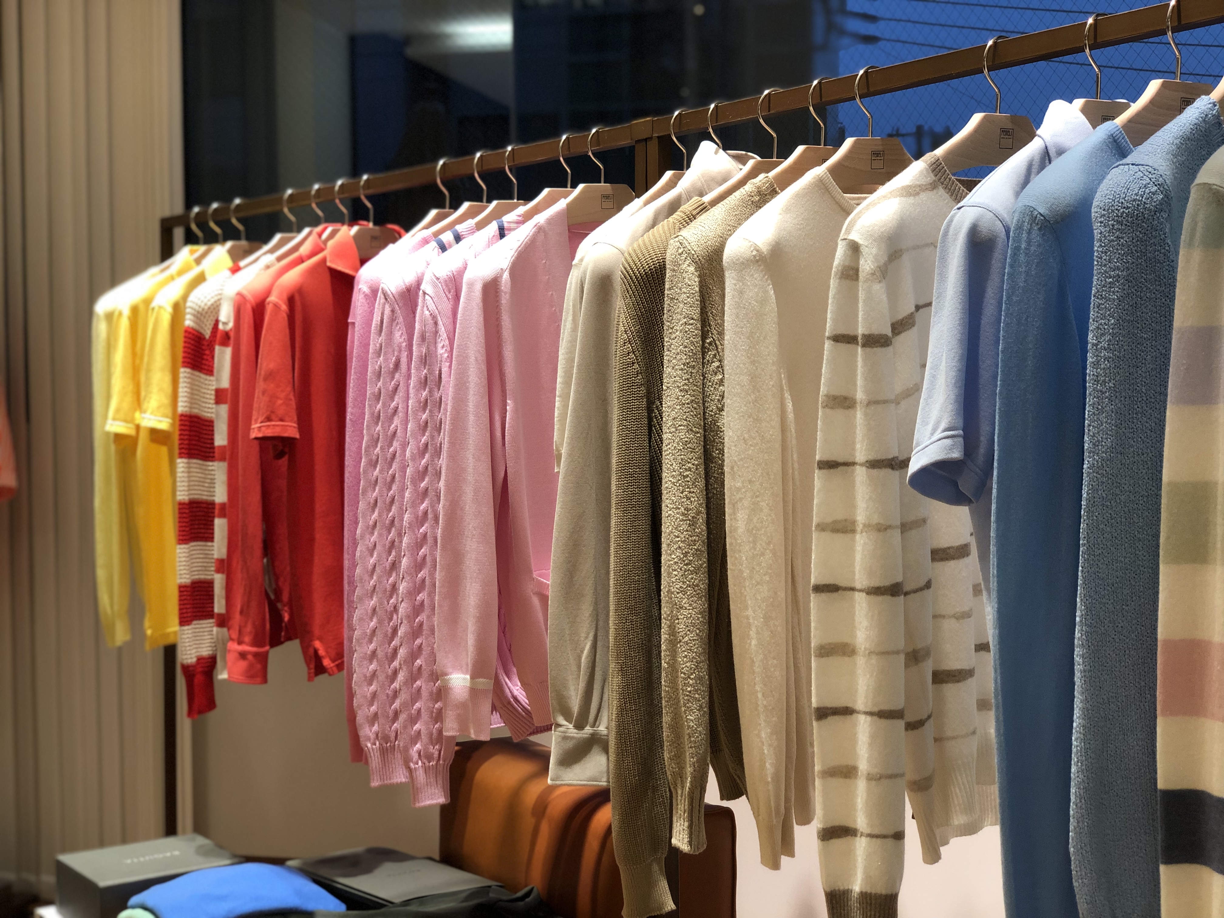 入荷した時から気になっていたこちらのコットンニット。コットンなのに柔らかく滑らかな肌触りの生地感はさすがフェデリ。ニットで気になる点と言えば、ネック部分や袖のリブの詰まり加減、そしてシルエット。リブの詰まり加減は非常にしっかりとしていて、個人的に合格◎シルエットも細身体型でサイズ46を着用し8Gらしい、ほんのりとゆとり感がしっかりあり合格◎結果、100点満点の仕上がりのサイズ感なので言う事無しでした!カジュアルスタイルはもちろん、ジャケットのインナーとしても使えるので是非ワードローブに追加してみては!普段選ばれているサイズをお選びくださいませ。