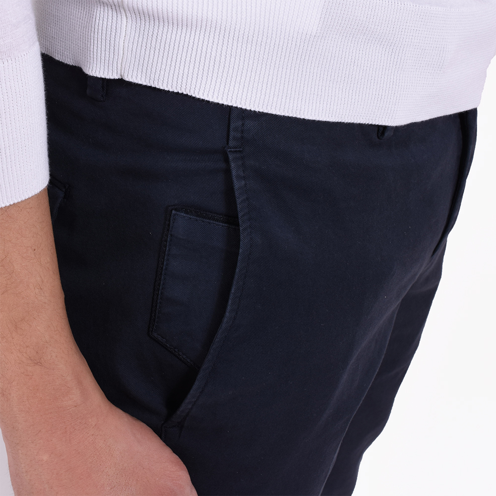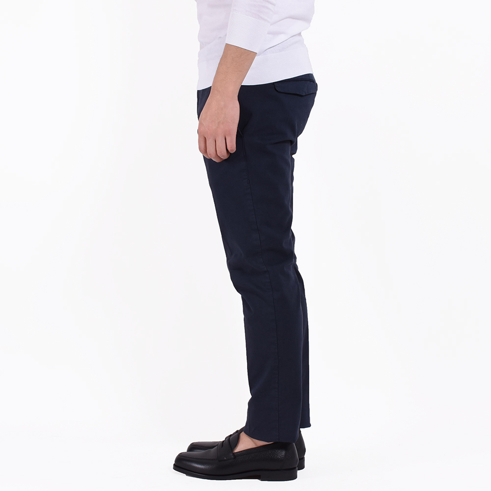 今シーズンも登場しました!もう、お馴染みのPT01!ではなく、リブランディングを果たし、ブランド名を変更した「PT TORINO」です!こちらは代表的モデル“SKINNY FIT”のコットンパンツ。コットンでもギャバジン素材を使用しているので、ほんのり光沢感としなやかさがあるのが特徴です。そして、ストレッチ性もしっかりあるので、ラクに屈伸ができるくらいです。細身体型で普段はサイズ42を着用していますが、こちらのモデルはワンサイズ上げたサイズ44がピッタリでした。サイズ42だと脚に生地が張り付く感じですが、サイズ44は適度なゆとりがありつつシルエットもしっかりキープ。股上が少し浅めなので腰骨の真ん中辺りにウエスト位置がきます。普段選ばれているサイズよりひとつ上のサイズでもよろしいかなと思います。