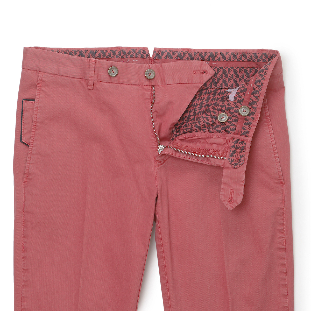 ・生地はストレッチ性抜群、目付350グラムのコットンギャバ。「PT(ピーティー)」が得意とするガーメンドダイによってソフトな風合い、こなれ感たっぷりの色合いに仕上げられています。全6色(ラベンダー系が今後入荷予定)でのご用意。