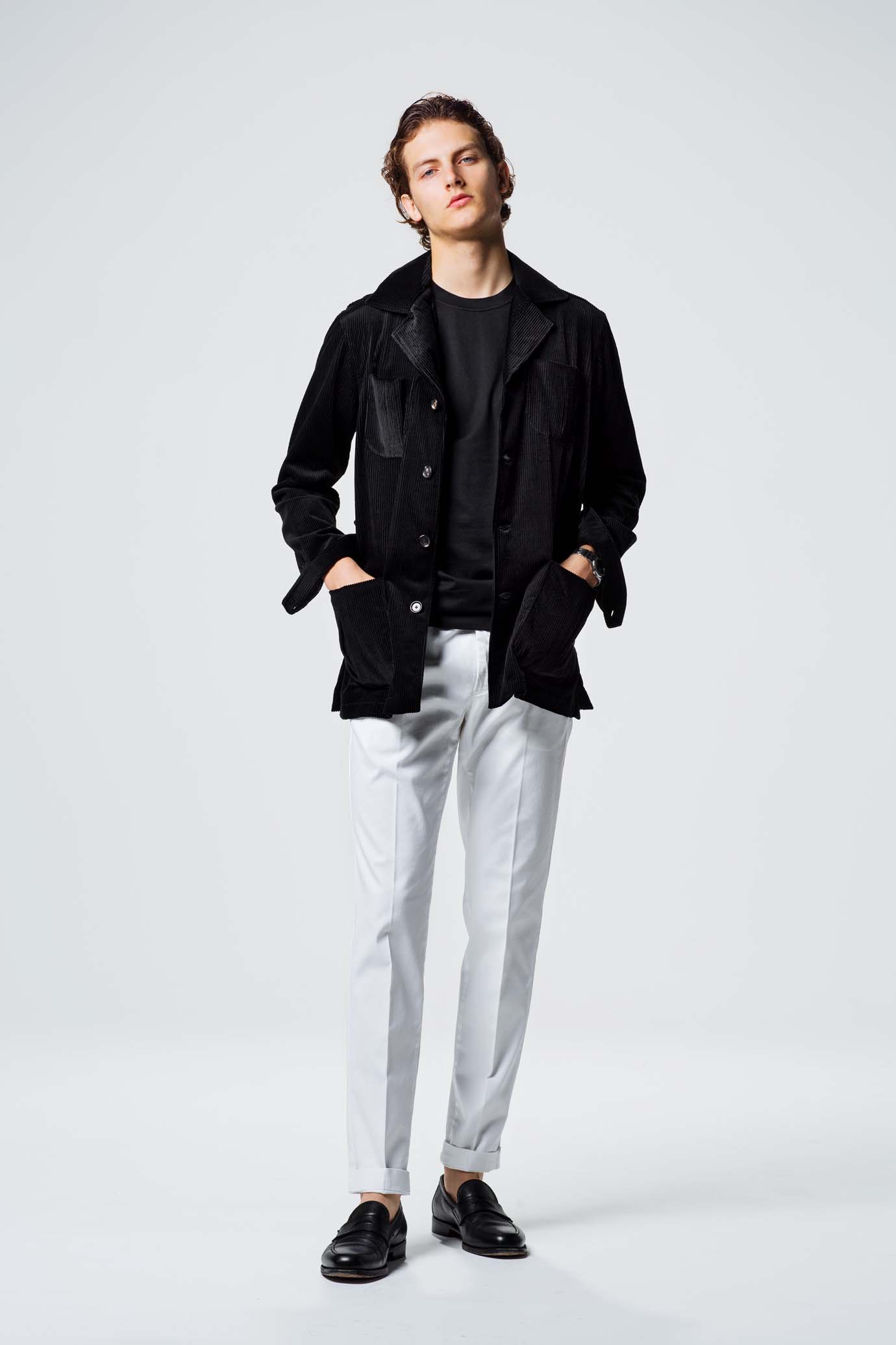今シーズンも登場致しました!もう、お馴染みのPT01!ではなく、リブランディングを果たし、ブランド名を変更したPT TORINOです!こちらは代表的モデルの “SKINNY FIT”のコットンパンツ。コットンでもツイル素材という事で、コットンなのにシワになりにくく、手触りが良いのが特徴的です。そして、ストレッチ性もしっかりあるので、屈伸ができる程楽。細身体型で普段サイズ42を着用するのですが、こちらのモデルはワンサイズ上げだサイズ44でピッタリでした。サイズ42だと脚に生地が張り付く感じですが、サイズ44だと適度なゆとりがありシルエットもしっかりキープ。股上は少し浅く、ウエスト位置は腰骨の真ん中辺りでした。普段選ばれているサイズのひとつ上でもよろしいかなと思います。