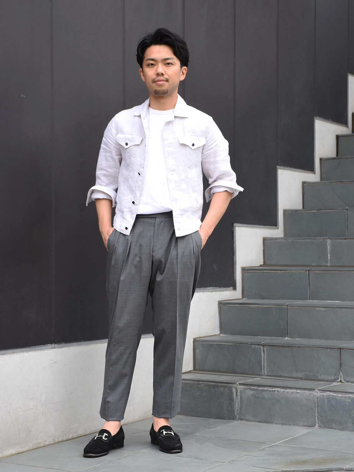 ・生地はストレッチウール。伸縮性抜群でサラリとしたタッチが春夏シーズンにピッタリ!さらに手洗いが可能なのでご自宅で手入れが出来るんです。ブラックに加え、グレー系をラインナップ。鉄板の3色です。
