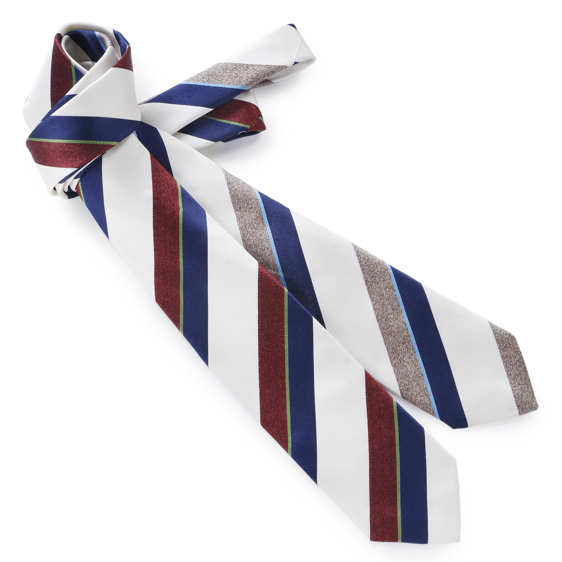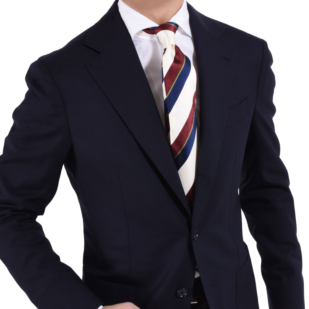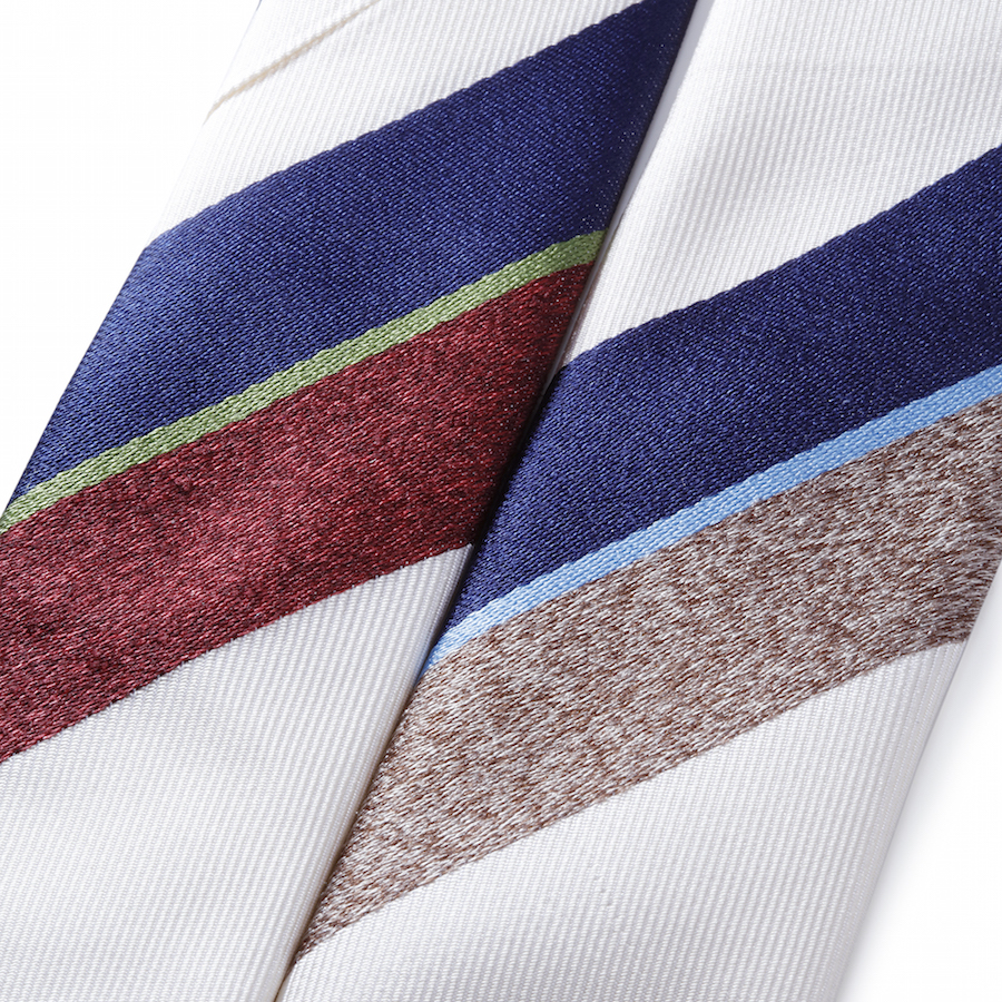 ・ベースカラーのオフホワイトが効いているストライプタイ。清潔感ある配色と織りの組み合わせにより表情が実に豊かです。
