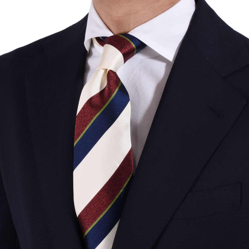 アイボリーとネイビーを基調としたストライプタイ。