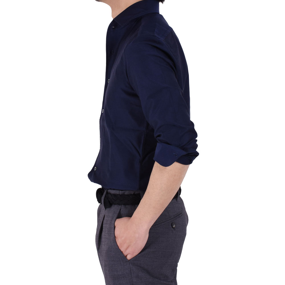 ・生地はお馴染みのジーロイングレーゼ。通気性に優れ、肌に触れる面積も少ないメッシュ状の組織なので、通年快適に過ごせます。ネイビーとホワイトの2色をラインナップ。ネイビーはトーンオントーンボタンによってシックな仕上がりに。