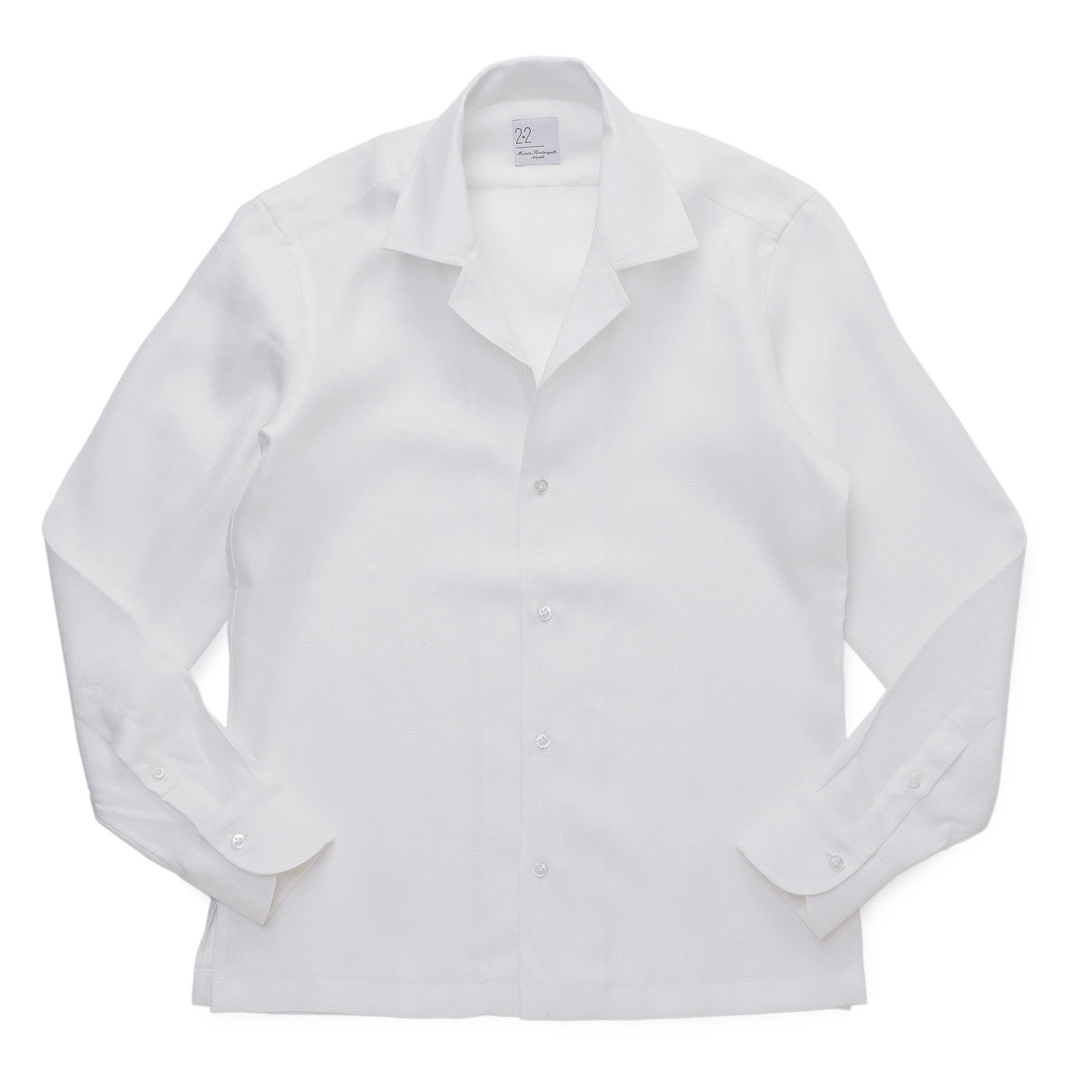 ・イタリアではオープンカラーがミリタリーシャツ(士官服)に由来すると言われていることもあり、カジュアル過ぎず、どことなくきちんと感があるのが「Maria Santangelo(マリア・サンタンジェロ)」らしいところ。