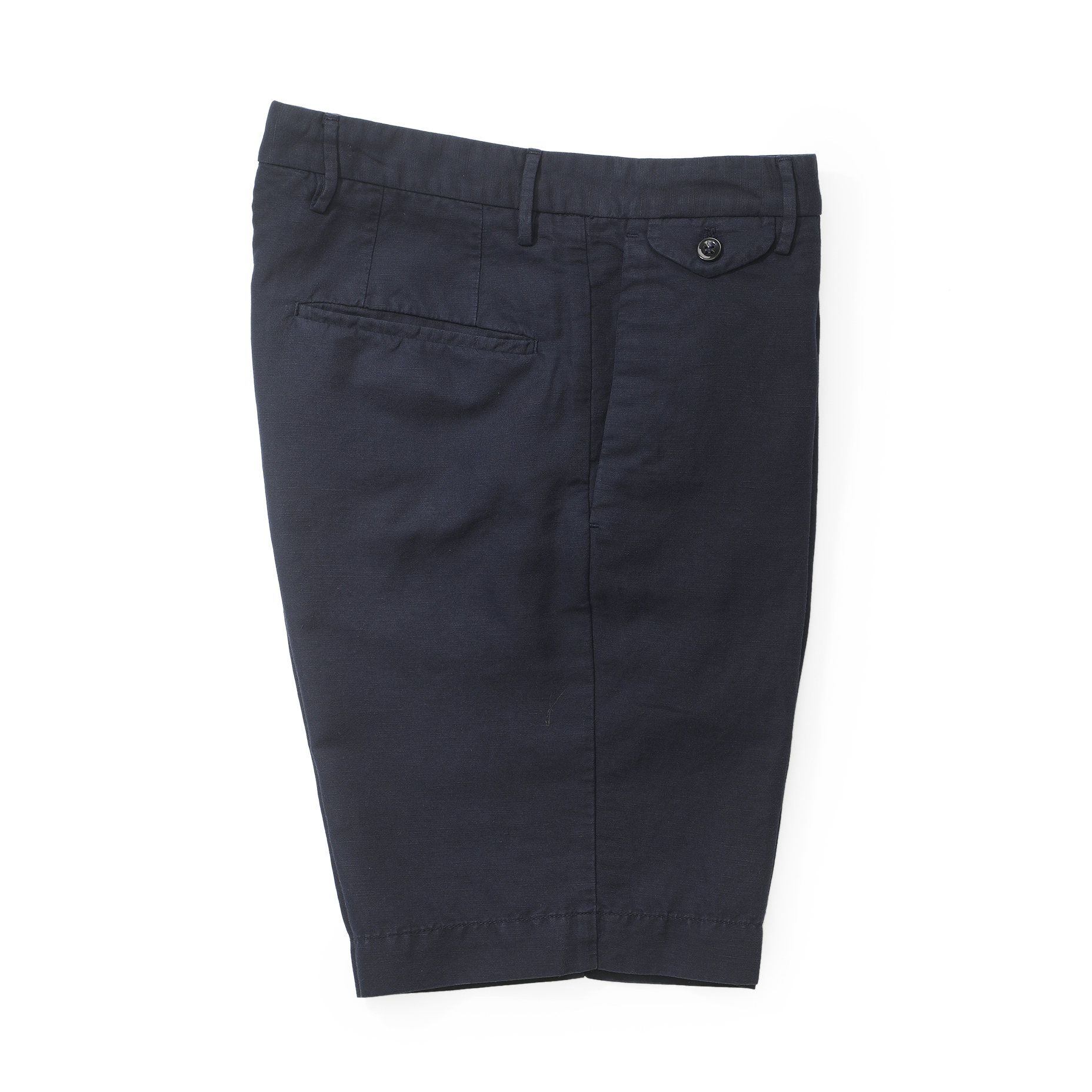チノパンの風合いと、リネンの風合いが見事ミックスされた生地に仕上がっており、一見チノパンの見た目ですが、よく見るとリネンの風合いがございます。生地感は柔らかさと硬さがどちらも良いバランスに触れている印象に。また、ショーツながらコインポケットが付いており、ほんのりクラシカルな雰囲気が◎細身体型で普段サイズ42を着用していますが、コチラはサイズ44を着用しジャストサイズでした。着用時の丈感は膝上5センチ位のバランスに。